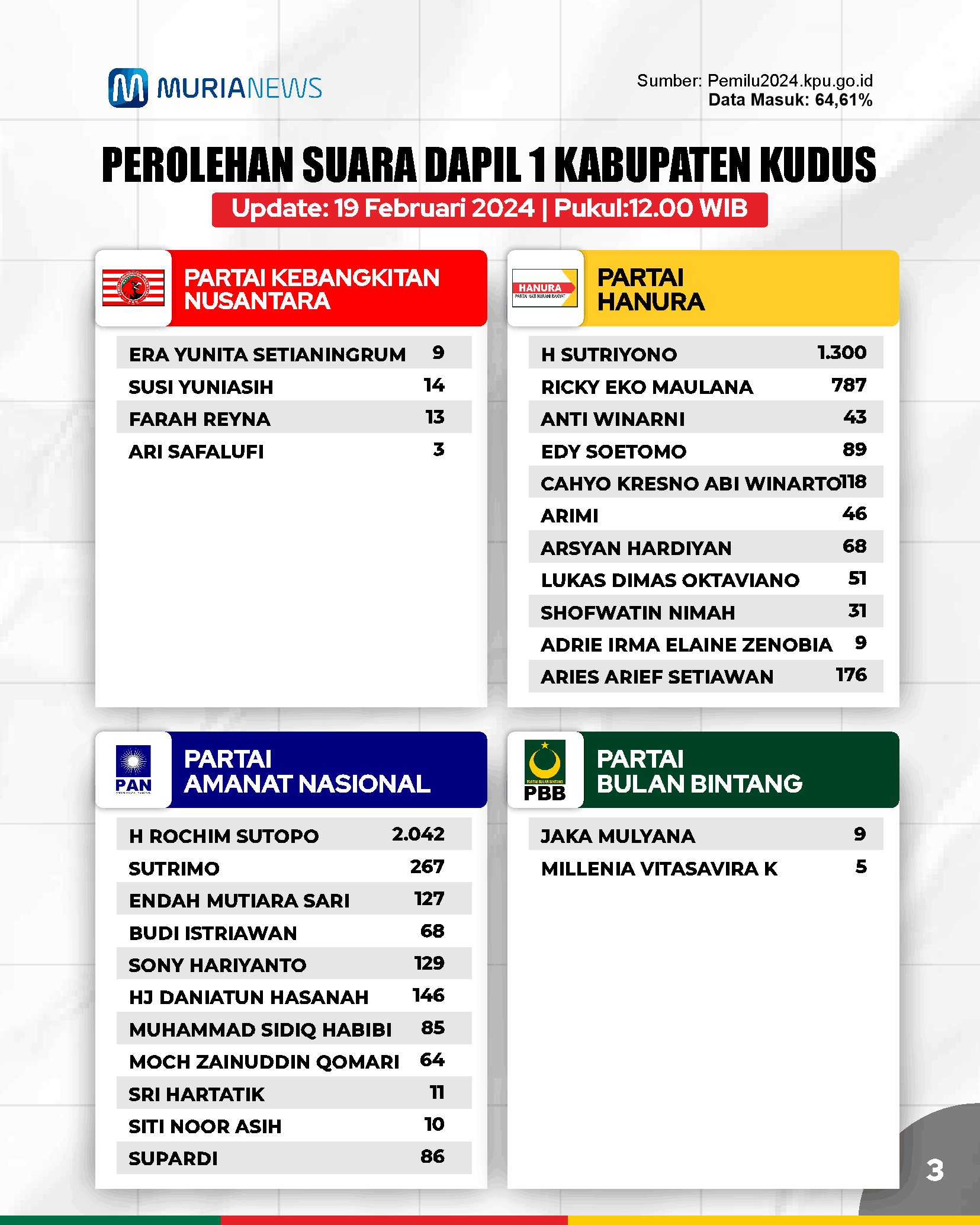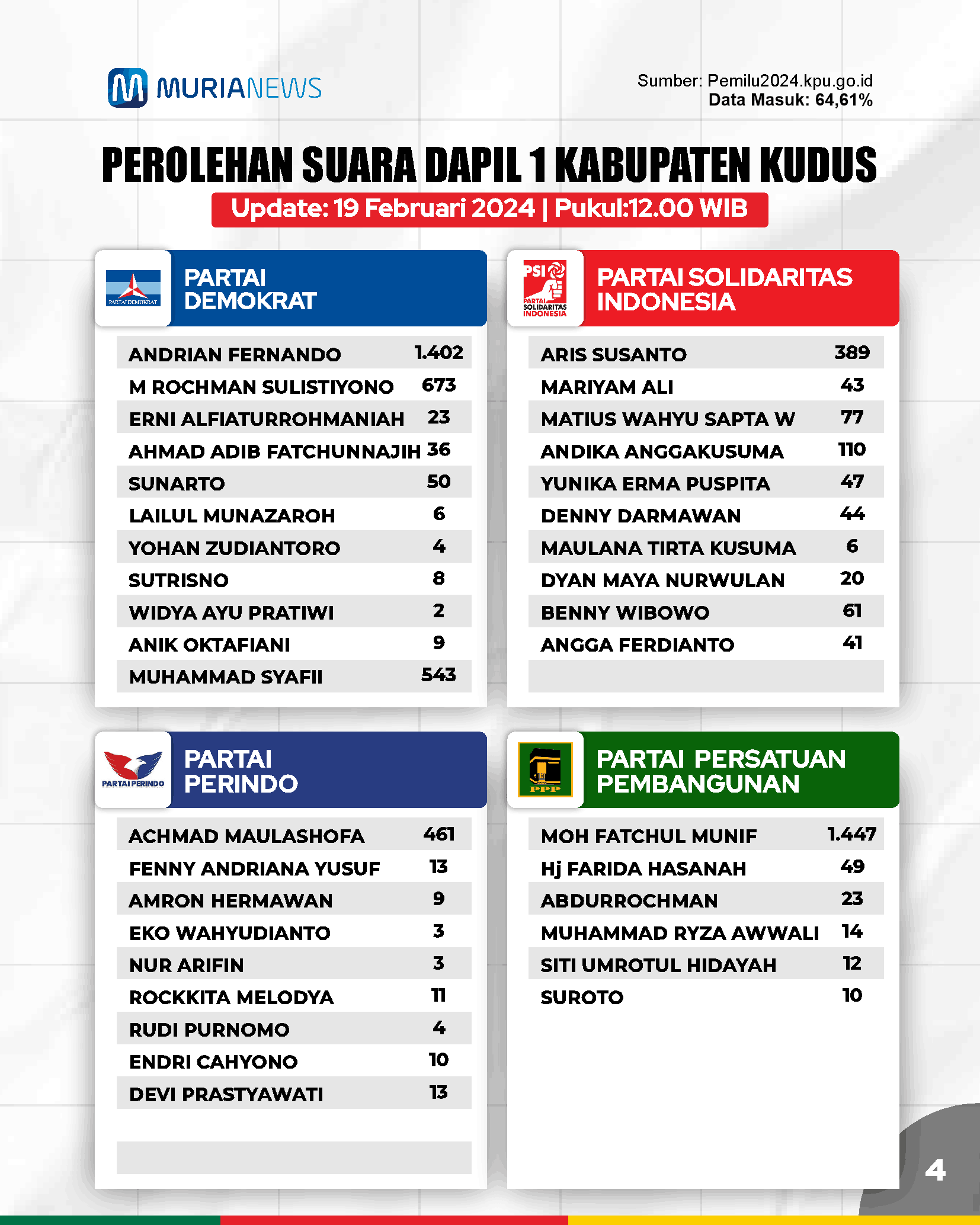 Update Suara Pileg Kudus Dapil 1, 19 Februari Pukul 13.30