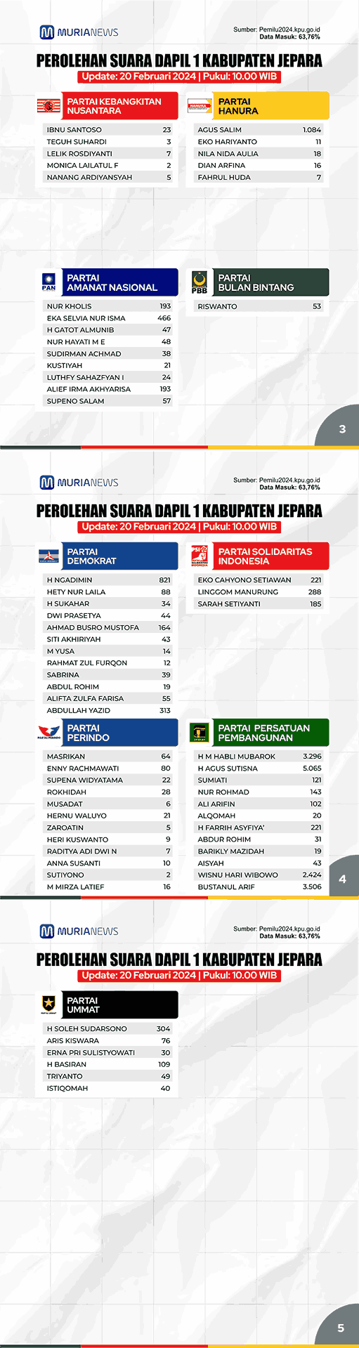 Update Suara Pileg DPRD Jepara Dapil 1, 20 Februari