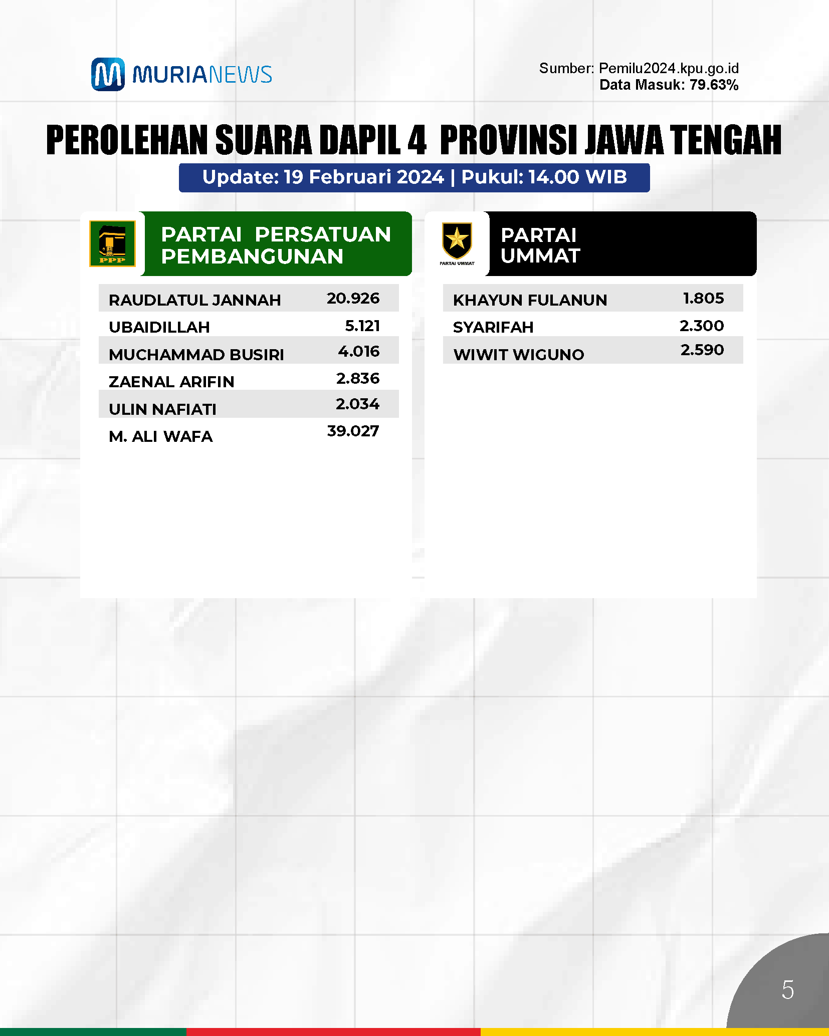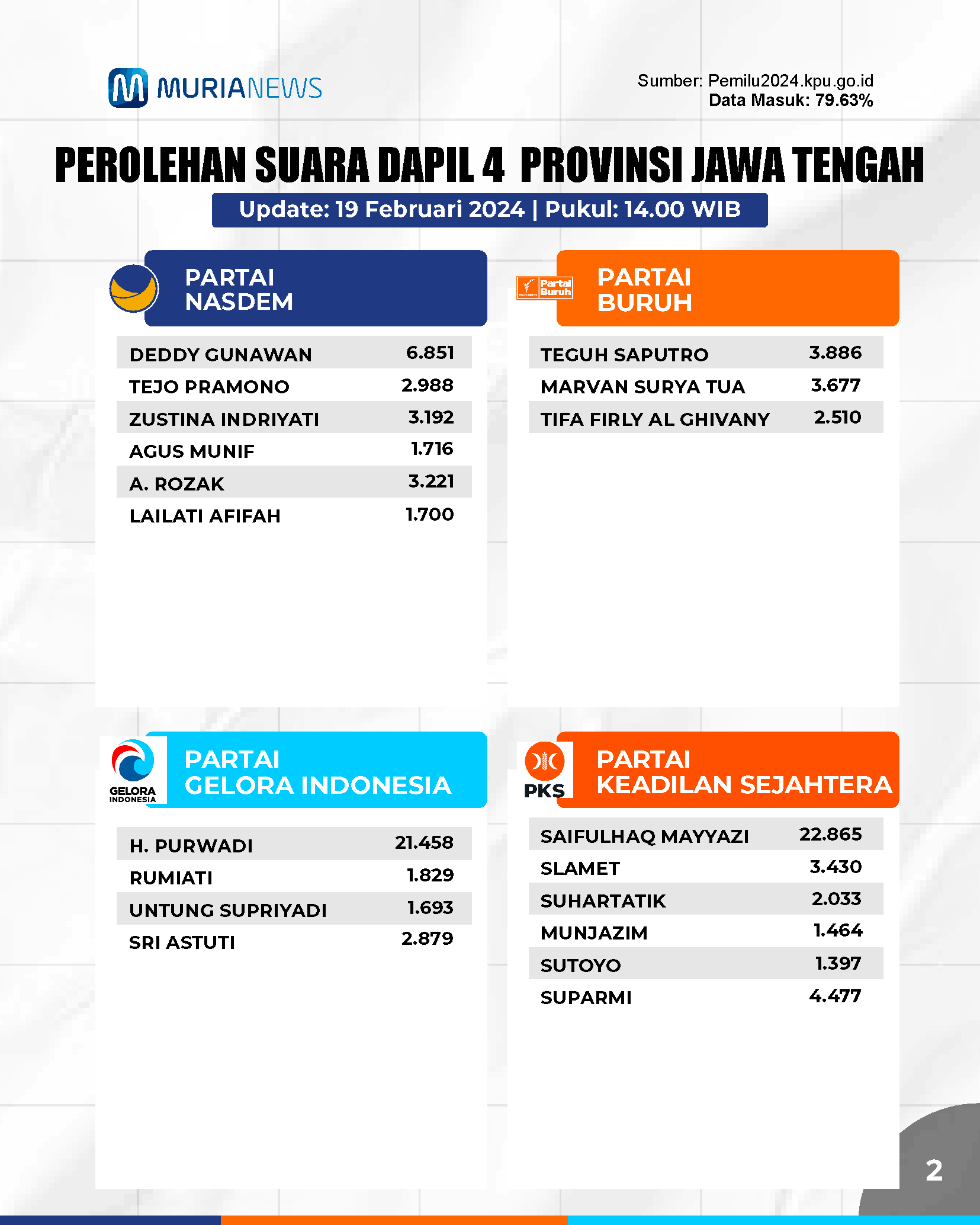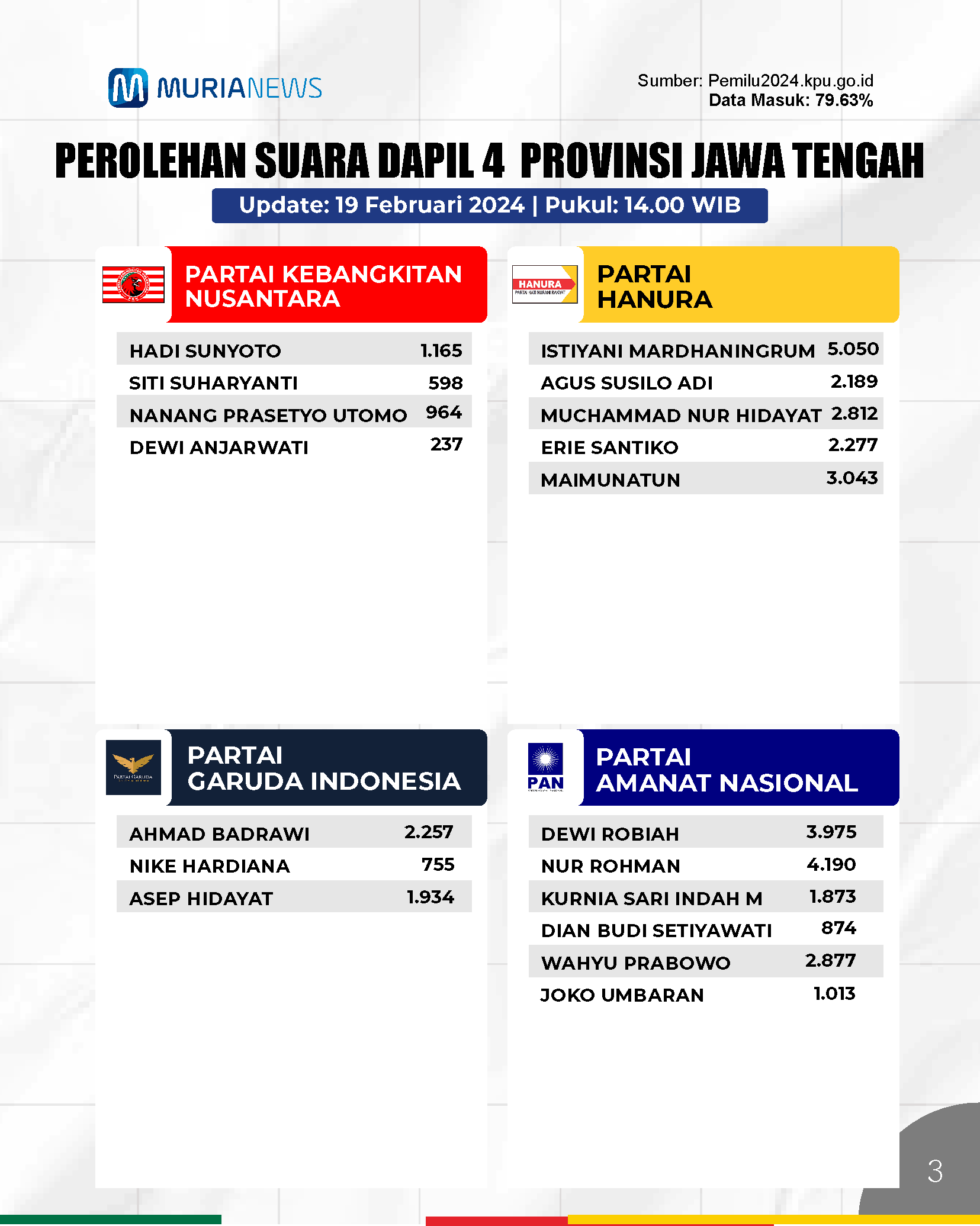 Update Suara Pileg DPRD Jateng Dapil 4 Tanggal 20 Februari