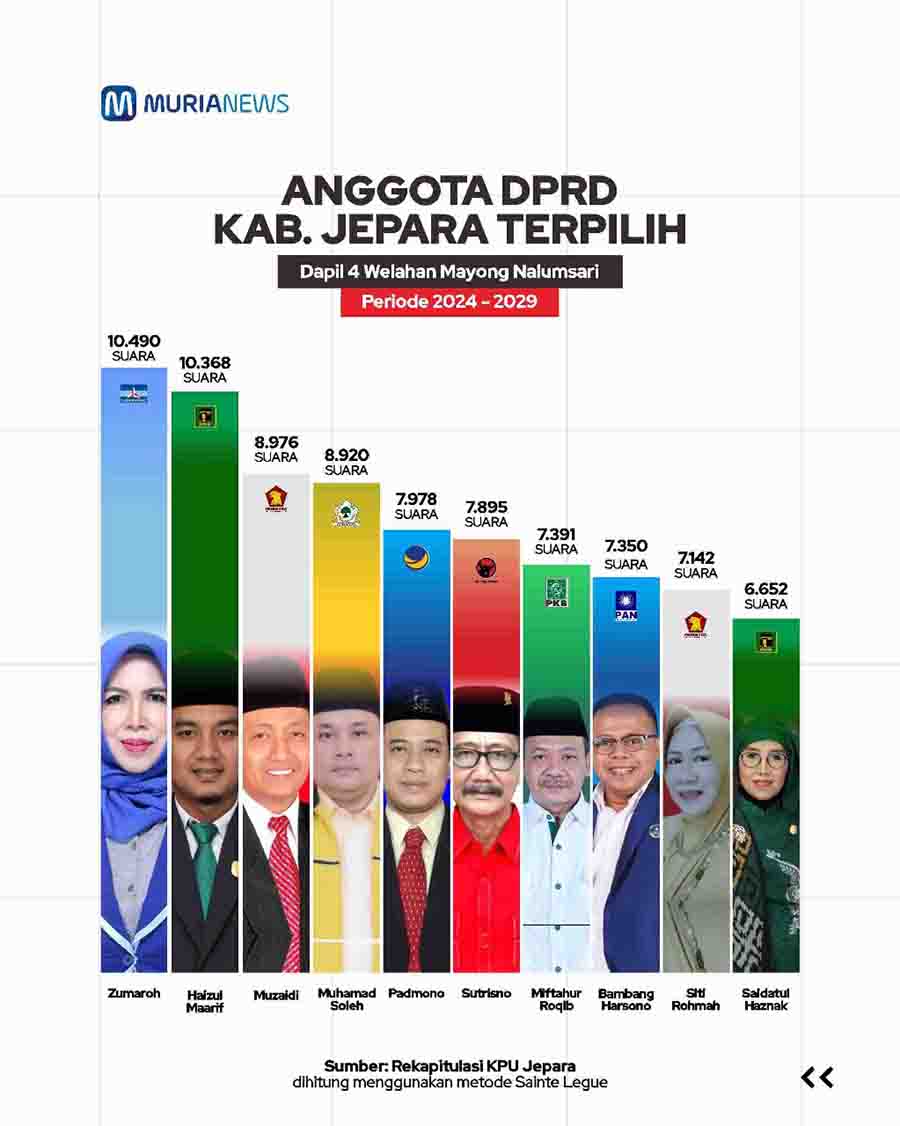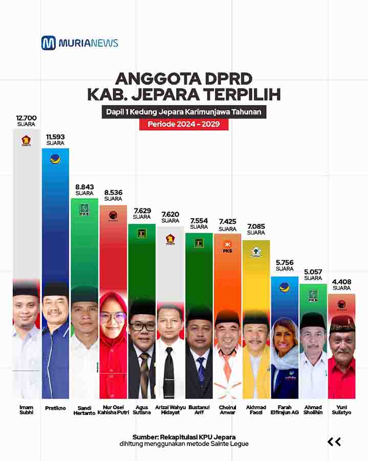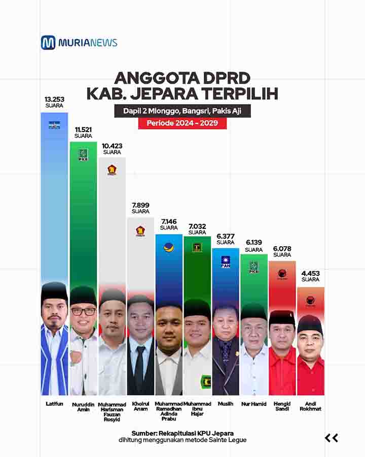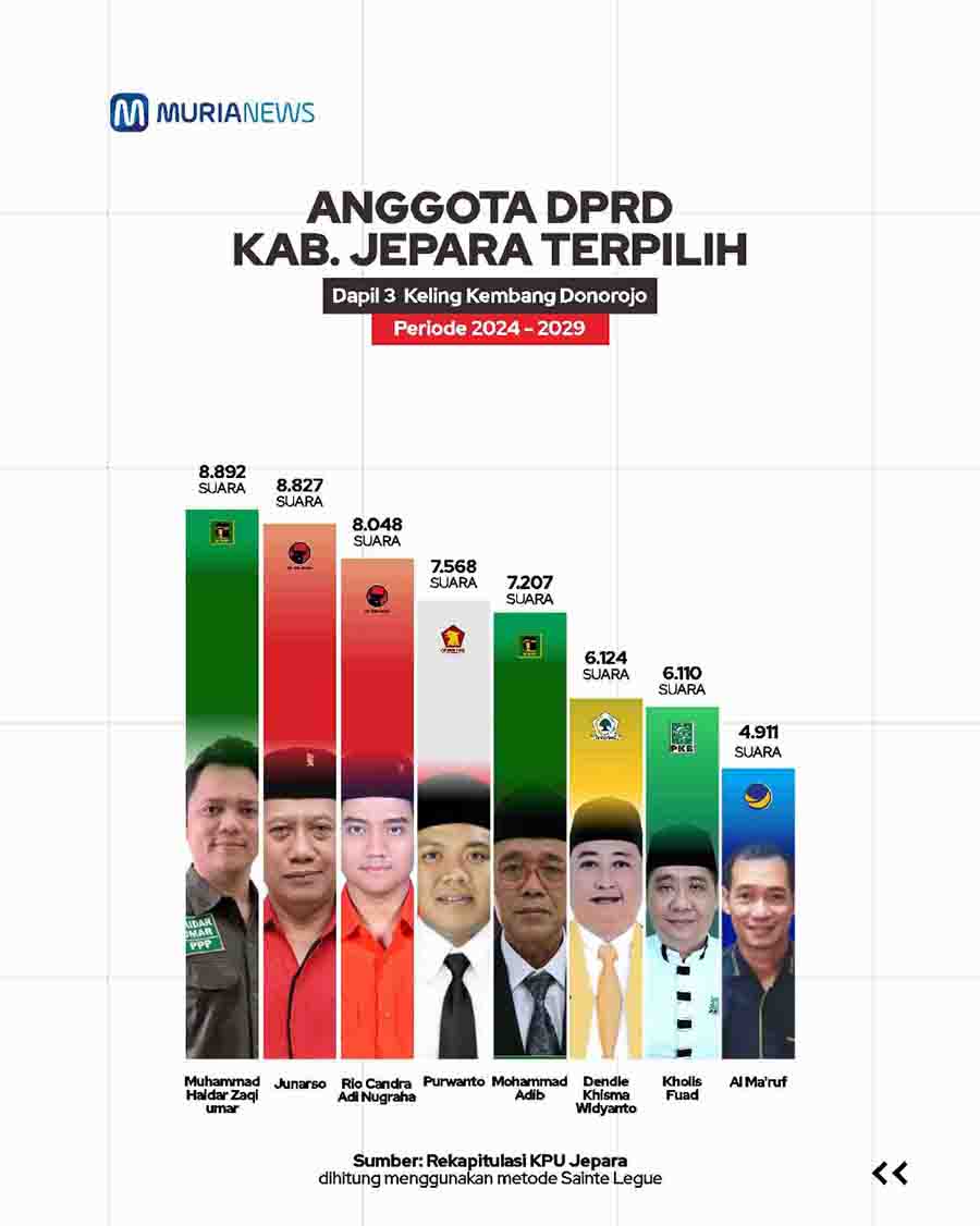 Murianews, Jepara – KPU Jepara telah menyelesaikan rekapitulasi hasil Pemilu 2024. Sosok caleg terpilih dan berpotensi mendapatkan kursi di DPRD Jepara pun dapat terlihat.