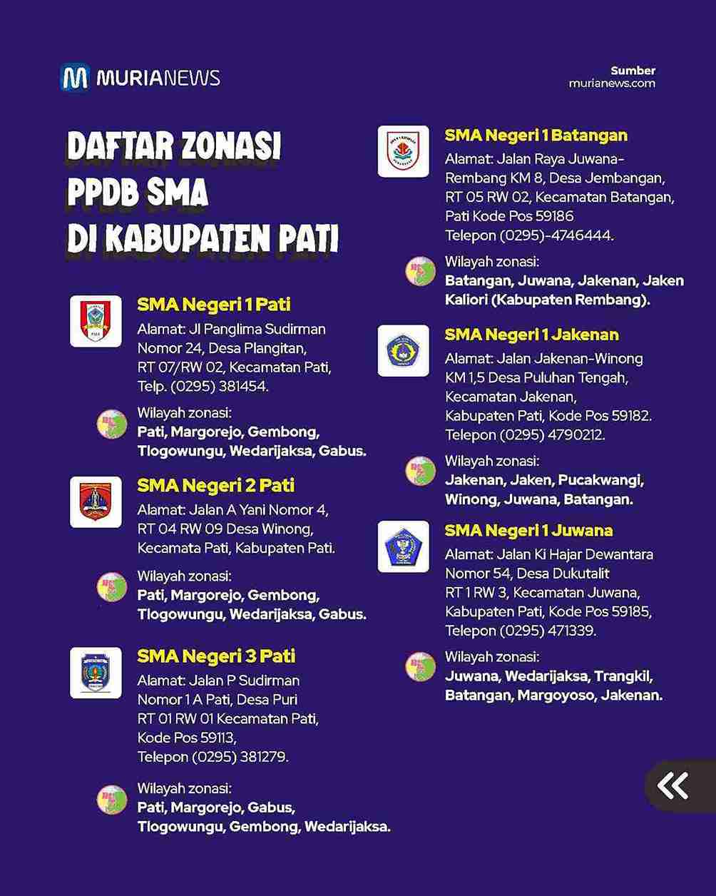 Berikut daftar zonasi PPDB SMA di Pati pada tahun ajaran 2024/2025: