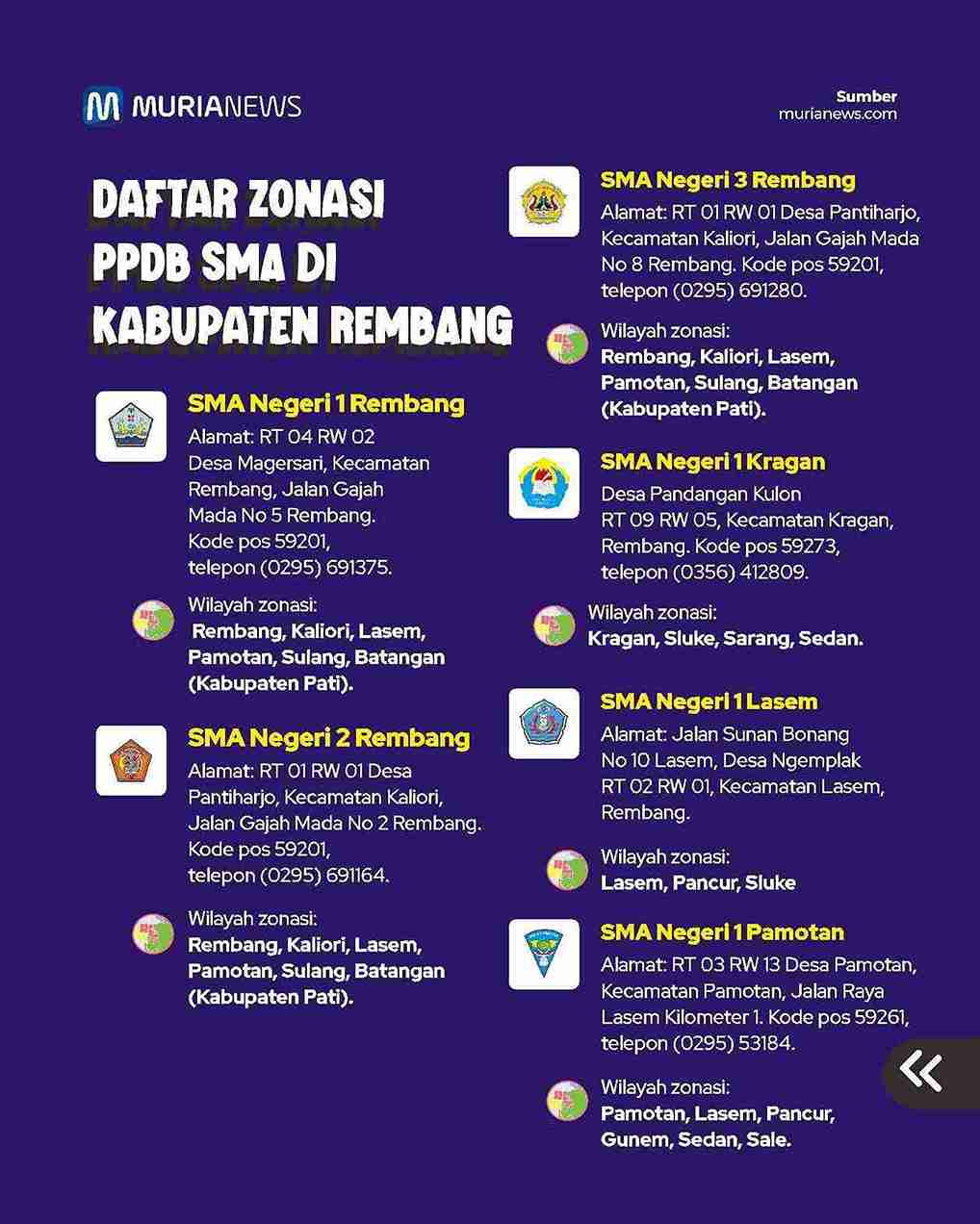 Berikut daftar zonasi PPDB SMA di Rembang pada tahun ajaran 2024/2025: