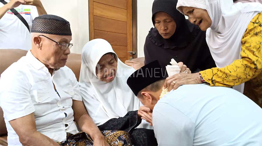 Usai lantunan doa, Samani dan Bellinda kemudian menuju kediaman orang tua Samani yang tak jauh dari Lokasi rumahnya. Tangis haru kemudian pecah ketika Samani mulai mencium tangan ibunya. Iringan doa juga diucap lirih oleh Ibu Samani.