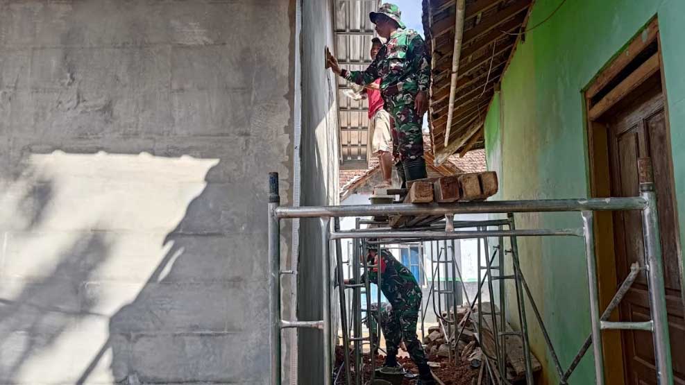 Satgas TMMD menggantinya dengan rumah sederhana layak huni. Membangunnya jelas dari nol lagi. Pemiliknya? Hanya modal nol rupiah, alias tidak mengeluarkan uang sepeserpun untuk pembangunan ulangnya.