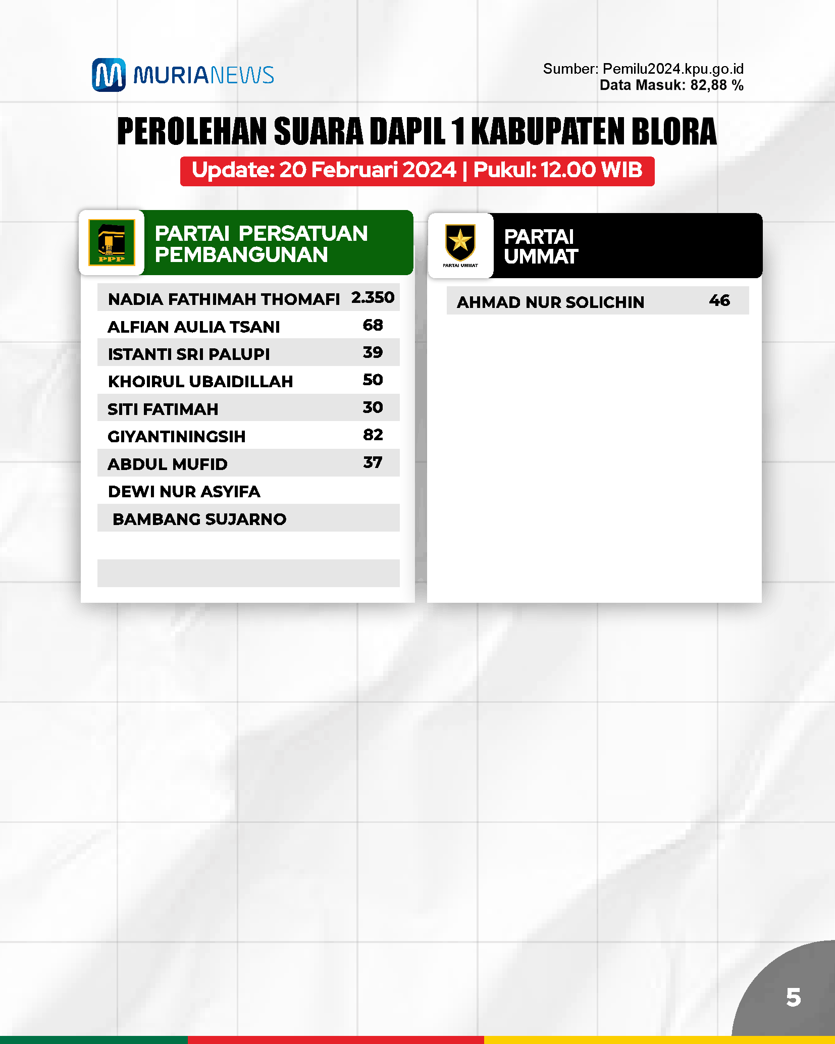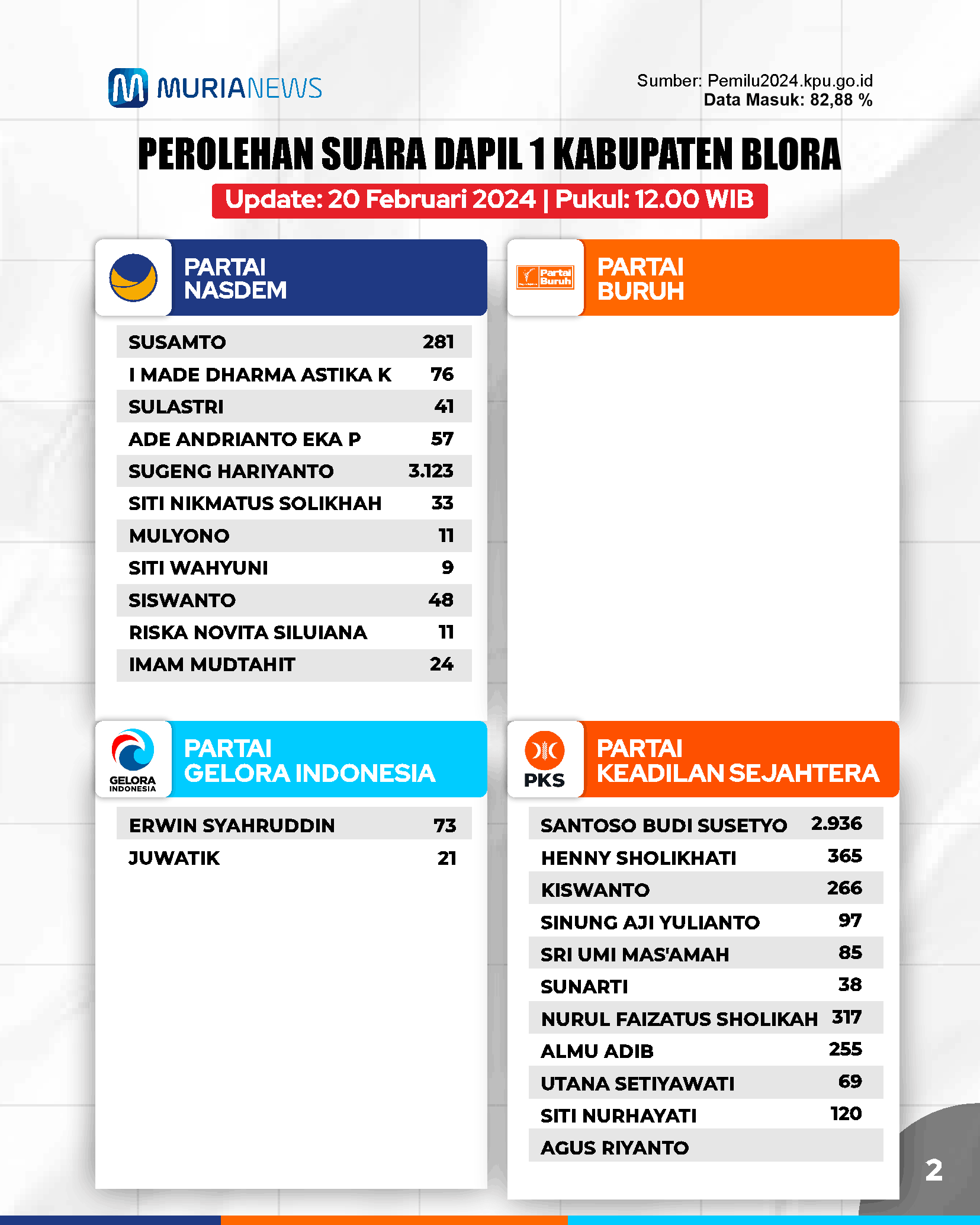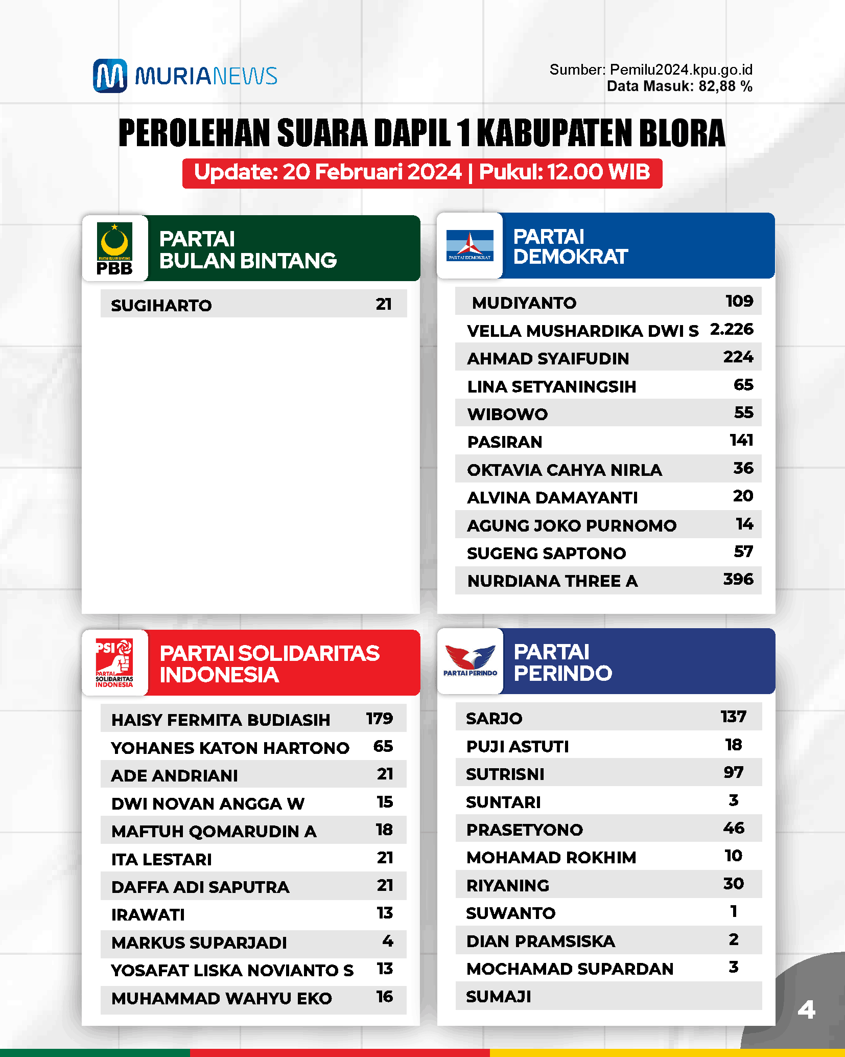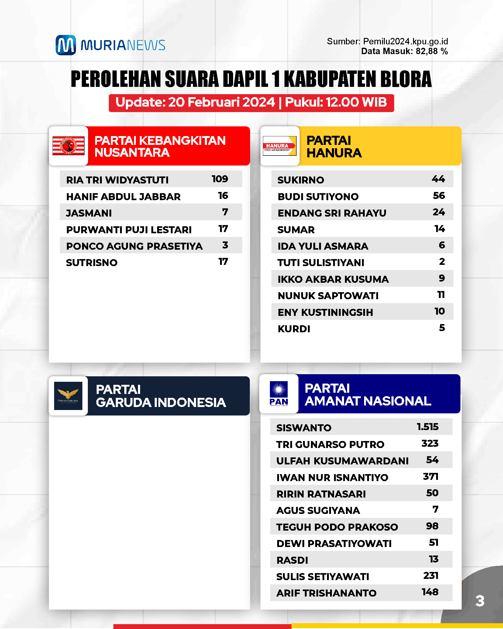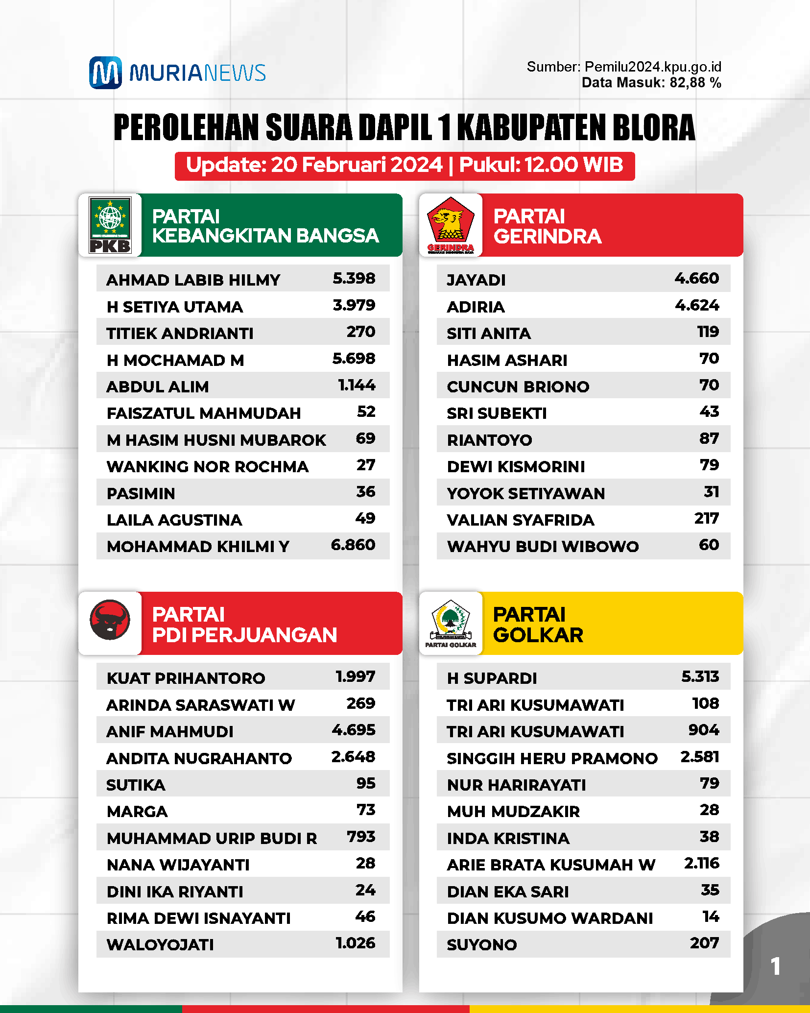 Update Suara Pileg DPRD Blora Dapil 1 Tanggal 20 Februari