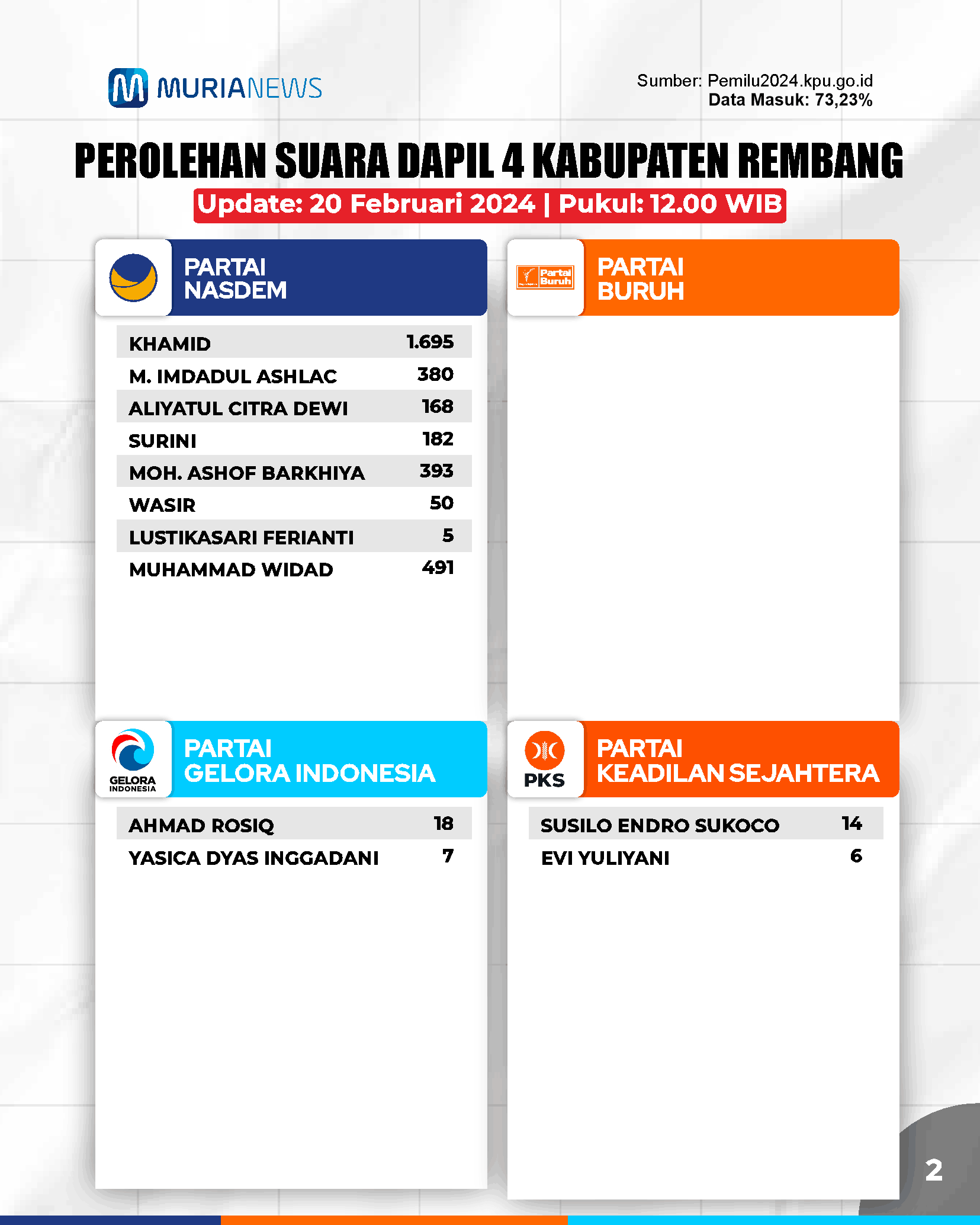 Update Suara Pileg DPRD Rembang Dapil 4 Tanggal 20 Februari