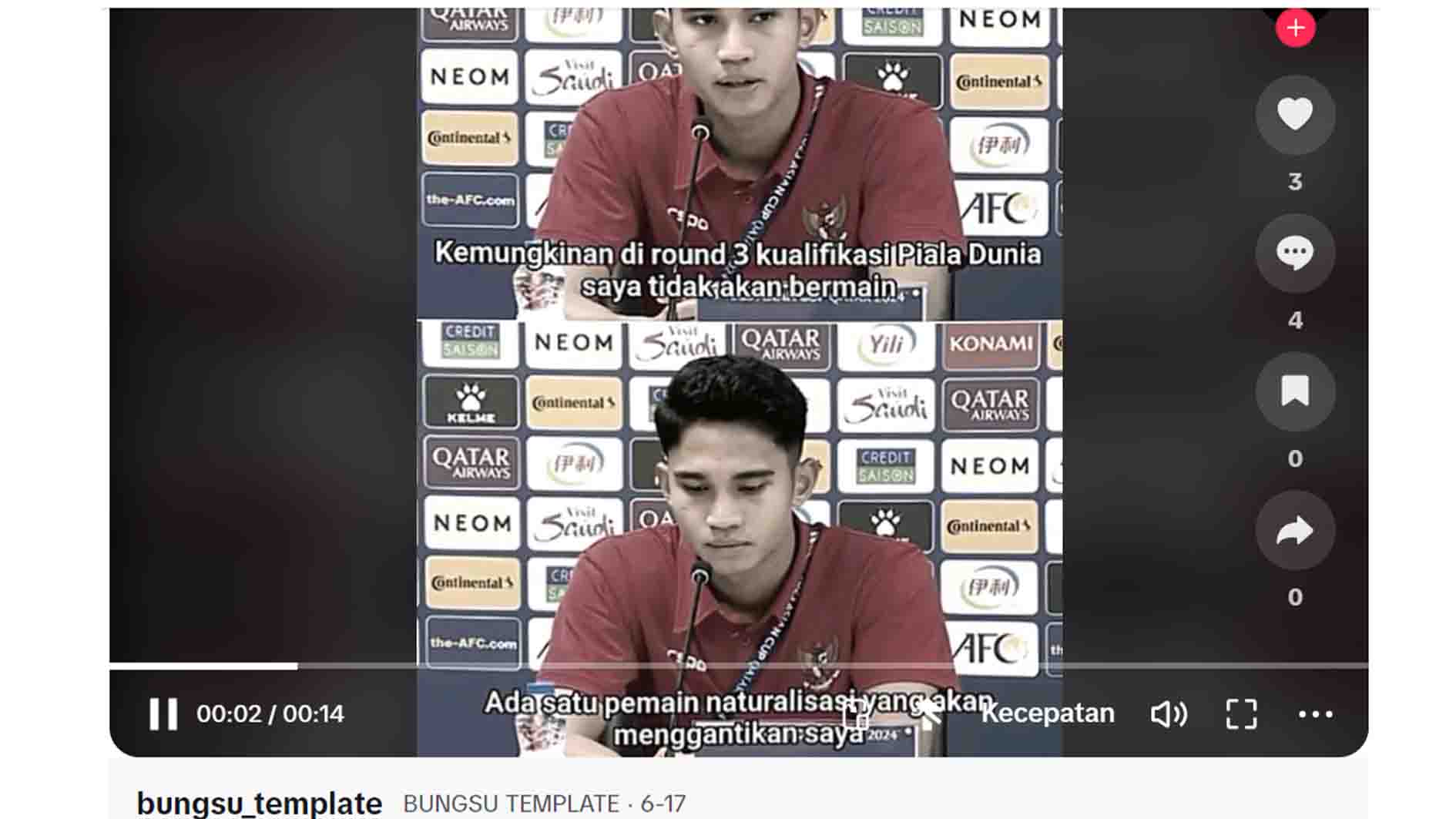 CEK FAKTA: Marselino Nyatakan Tak Ikut Kualifikasi Piala Dunia. (Istimewa/TikTok @bungsu_template)