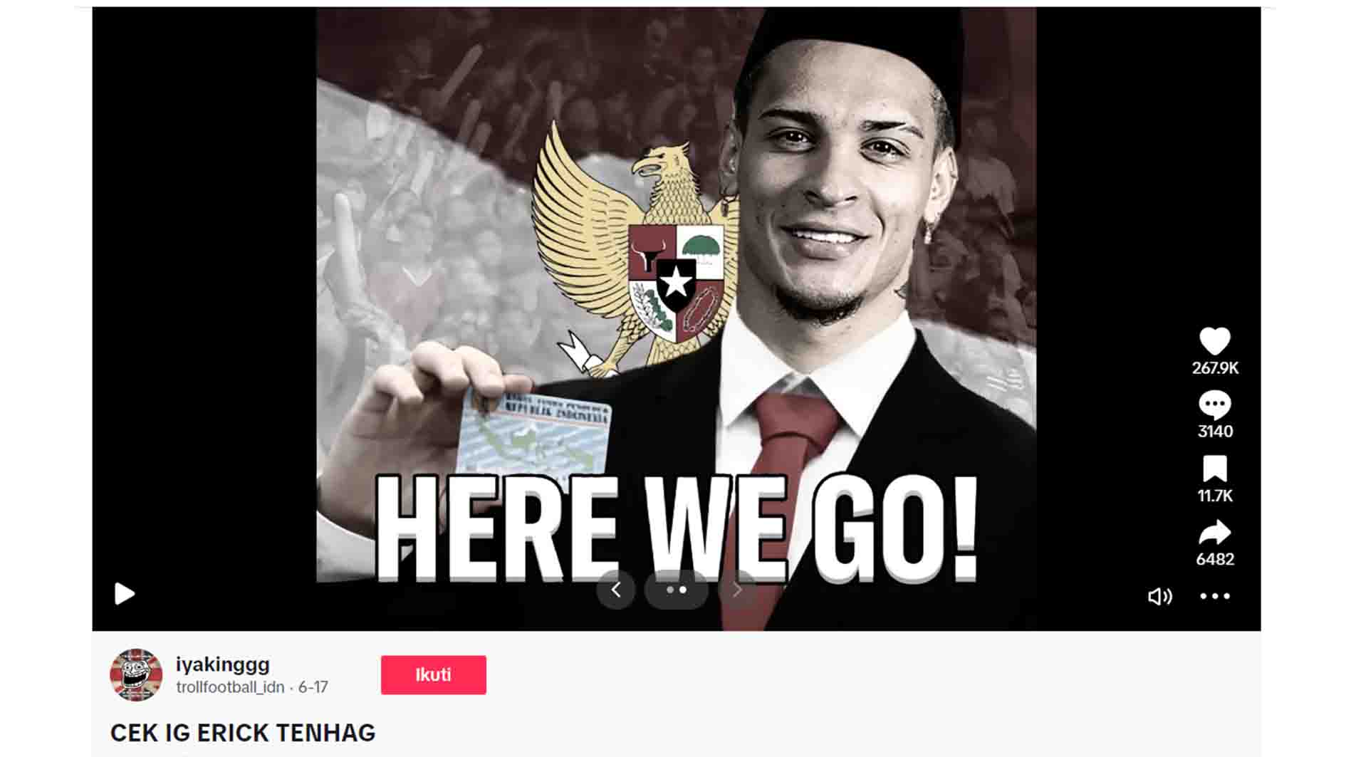 Hanya saja di bagian awal video di unggahan ini terdapat foto pemain naturalisasi Ivar Jenner memakai jas dan kopiah hitam dan tangan kanan memegang KTP.