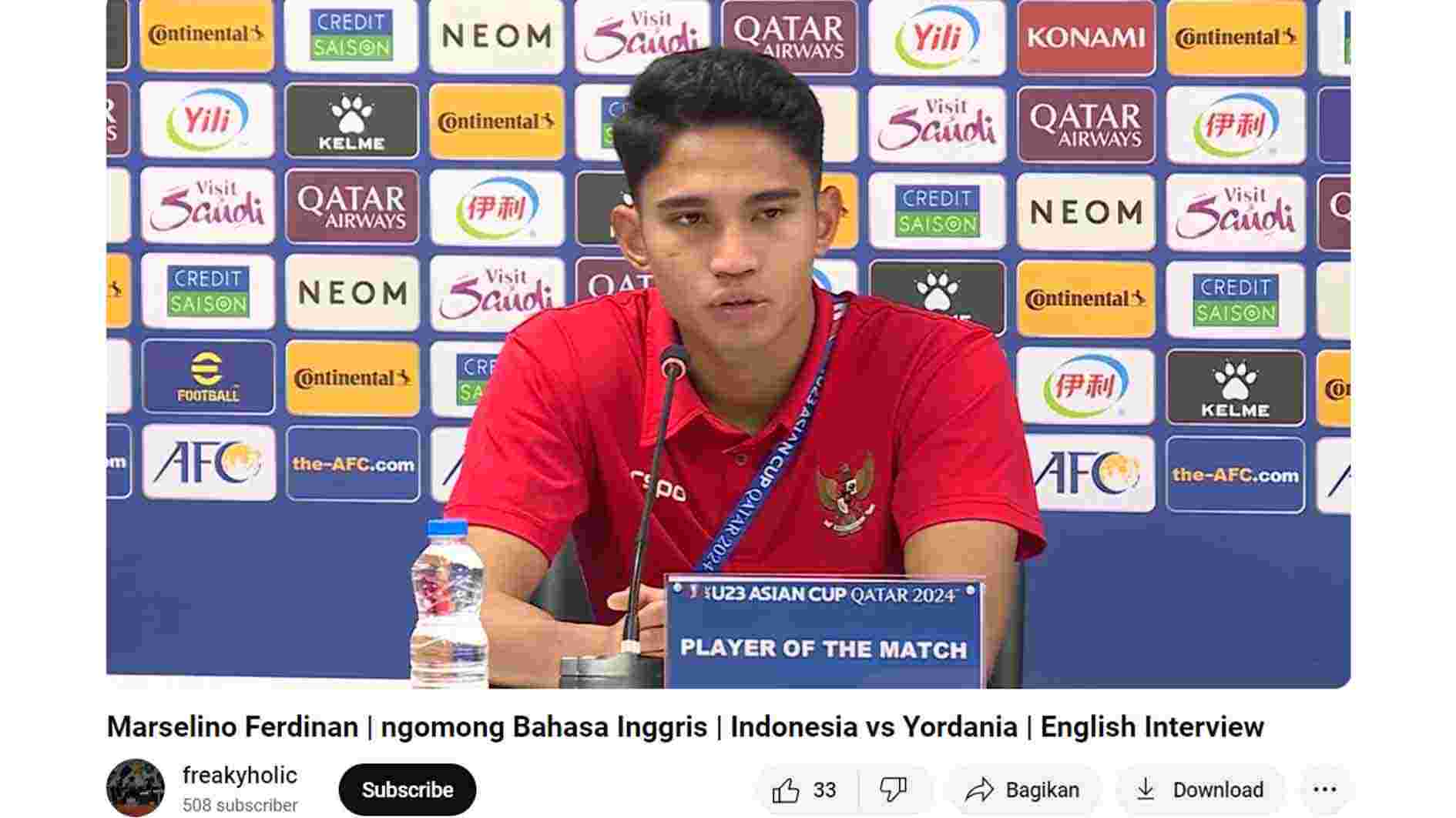Dilansir dari Kompas.com, memuat artikel dengan judul ”Harapan Marselino Ferdinan Usai Cetak 2 Gol ke Gawang Yordania” yang diunggah pada 22 April 2024.