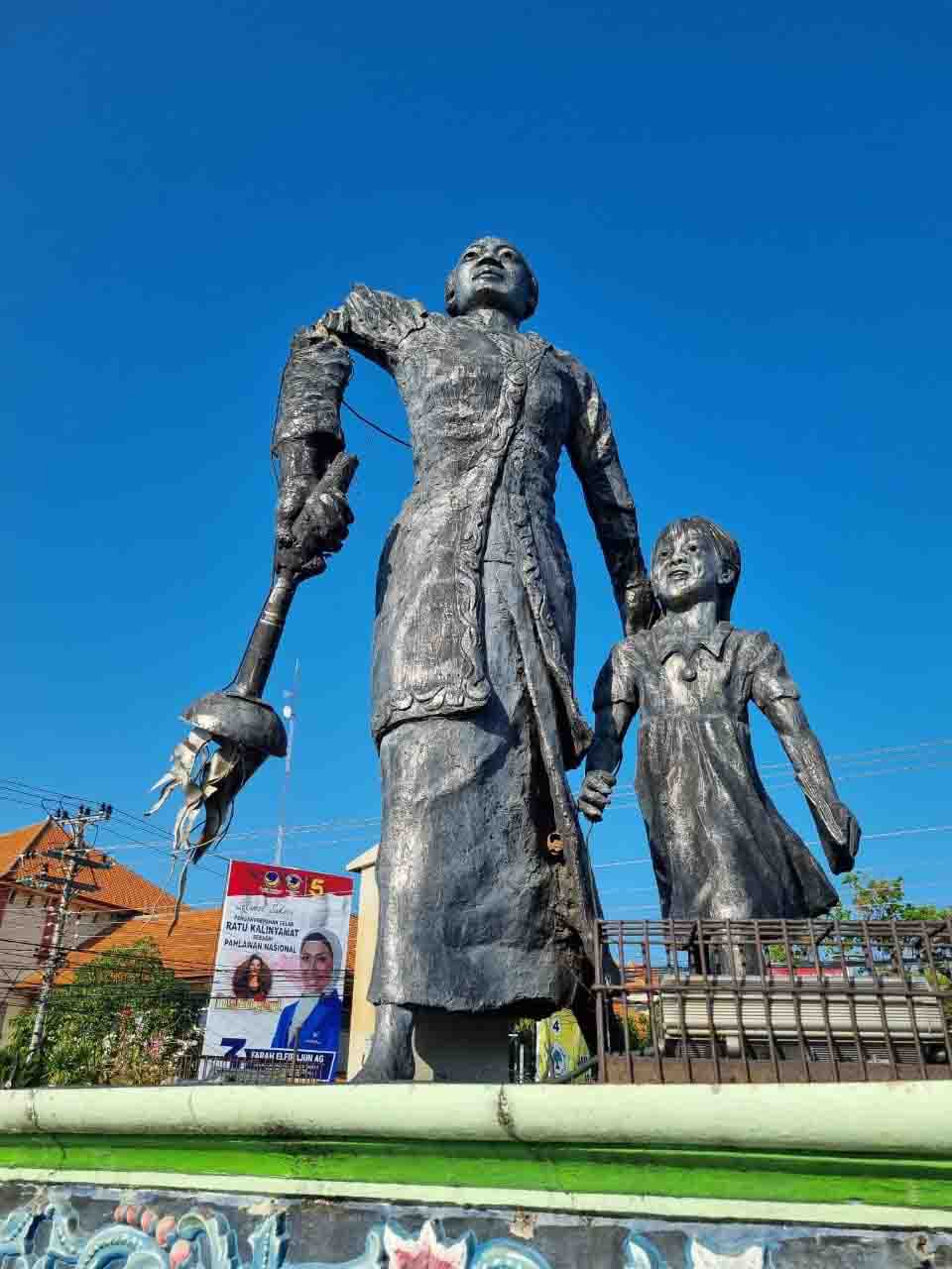 Murianews, Jepara – Tangan kanan patung RA Kartini di Kabupaten Jepara, Jawa Tengah, tiba-tiba patah. Beruntung, tak ada pengguna jalan yang tertimpa patahan patung itu.