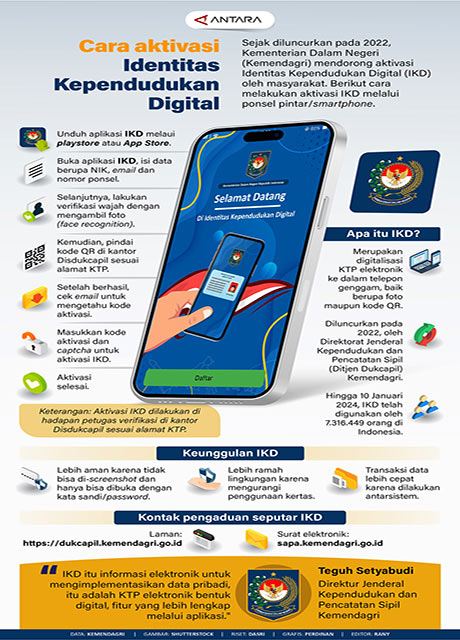 Murianews, Jakarta – Sejak diluncurkan pada 2022, Kementerian Dalam Negeri (Kemendagri) mendorong aktivasi Identitas Kependudukan Digital (IKD) oleh masyarakat. Berikut cara melakukan aktivasi IKD melalui ponsel pintar/smartphone. (nad)