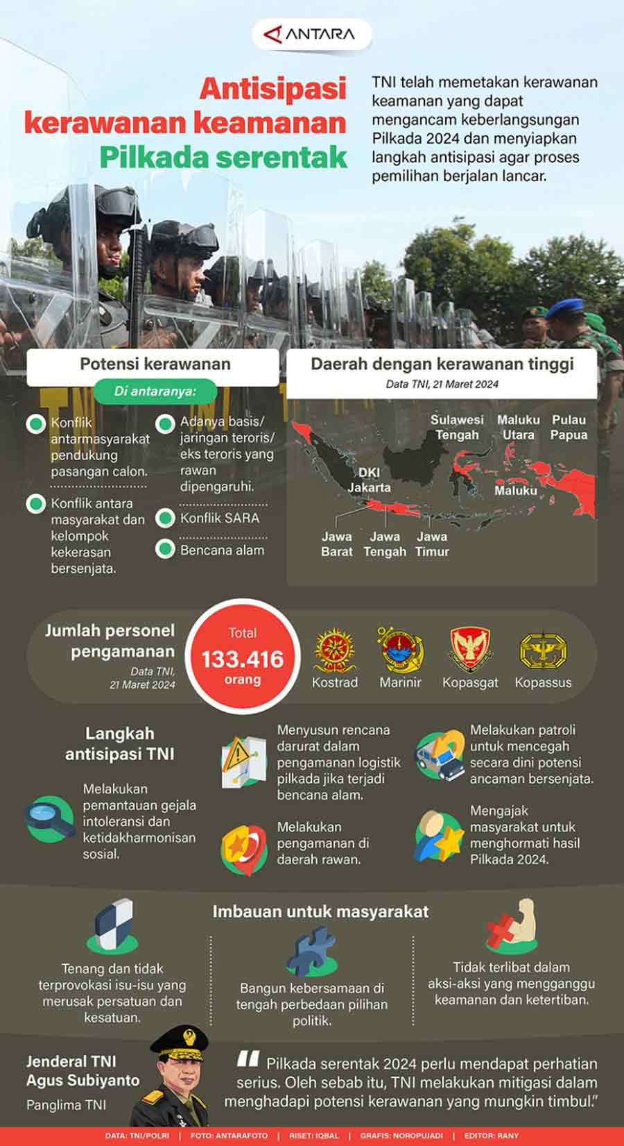 Murianews, Jakarta – TNI telah memetakan kerawanan keamanan yang dapat mengancam keberlangsungan Pilkada 2024 dan menyiapkan langkah antisipasi agar proses pemilihan berjalan lancar.