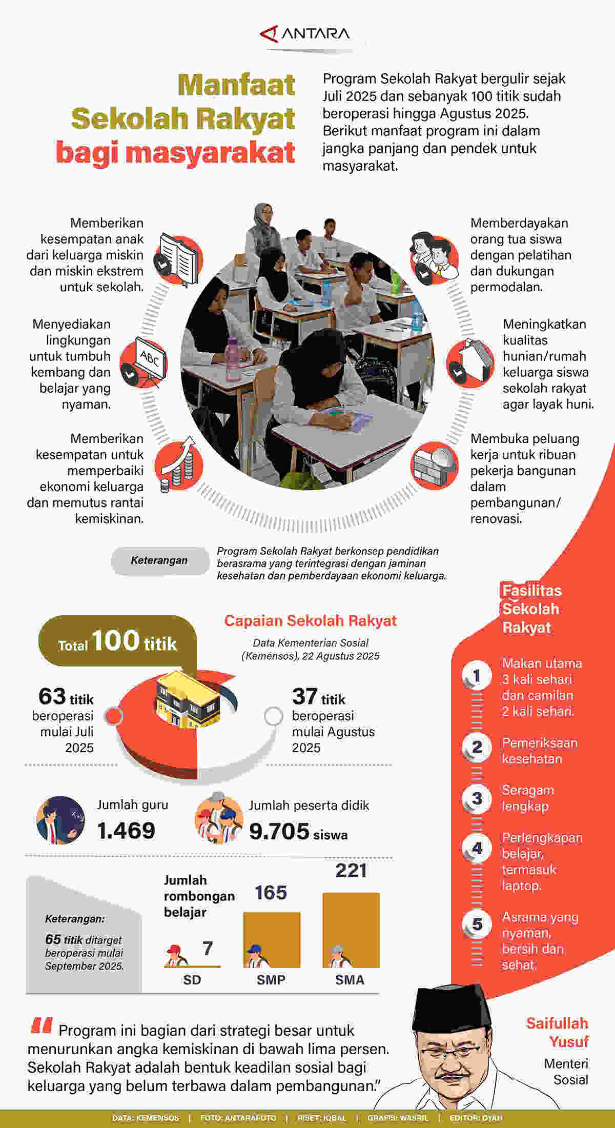 Murianews, Jakarta – Program Sekolah Rakyat bergulir sejak Juli 2025 dan sebanyak 100 titik sudah beroperasi hingga Agustus 2025. Berikut manfaat program ini dalam jangka panjang dan pendek untuk masyarakat. (nad)