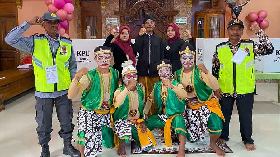 Murianews, Grobogan – Sejumlah petugas TPS atau anggota KPPS di Grobogan, Jawa Tengah tampil unik untuk menarik minat warga untuk memilih. Salah satunya di Desa Kluwan, Penawangan, di mana petugas TPS 10 memakai kostum punakawan.