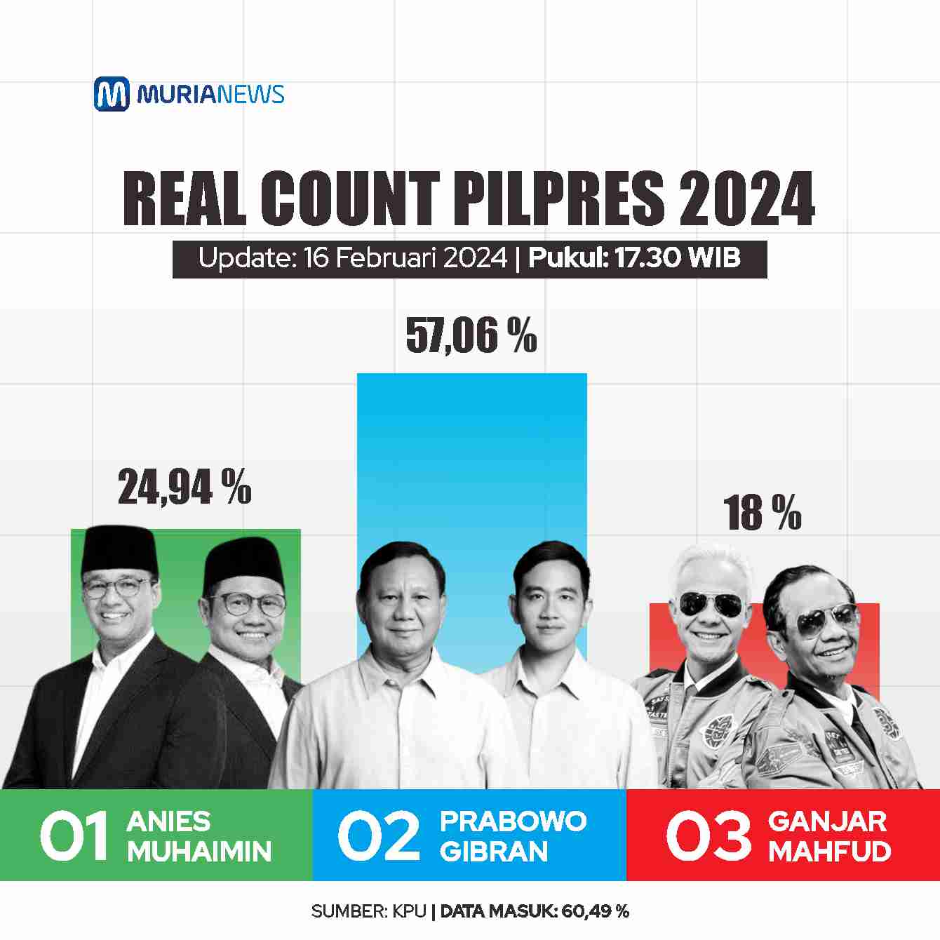 Update Real Count Pilpres 2024 16 Februari Pukul 17.30 WIB