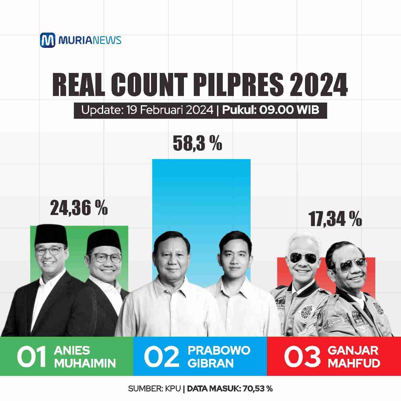 Update Hasil Pilpres 2024 19 Februari 2024 Pukul 09.00 WIB