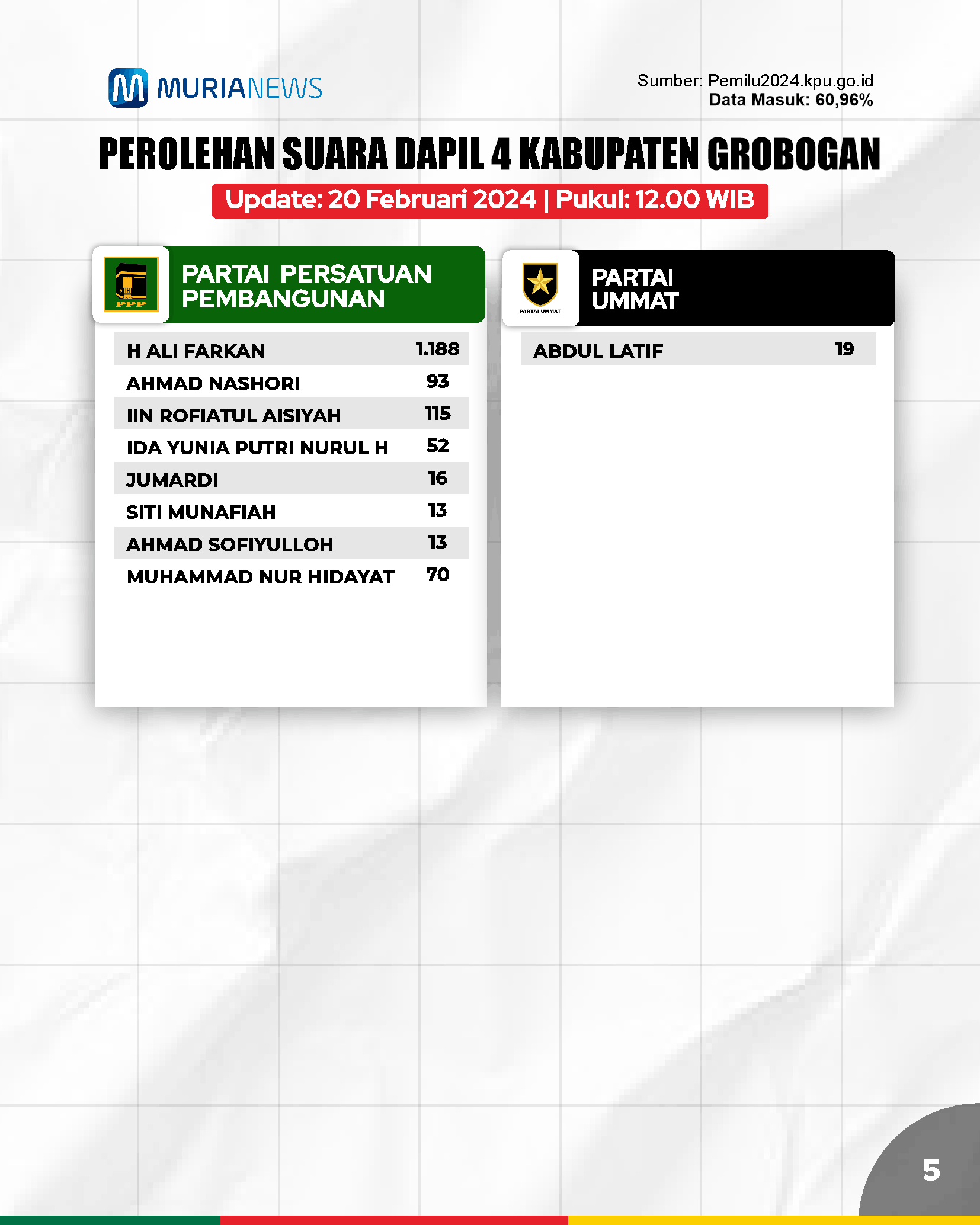 Update Suara Pileg DPRD Grobogan Dapil 4 Tanggal 20 Februari