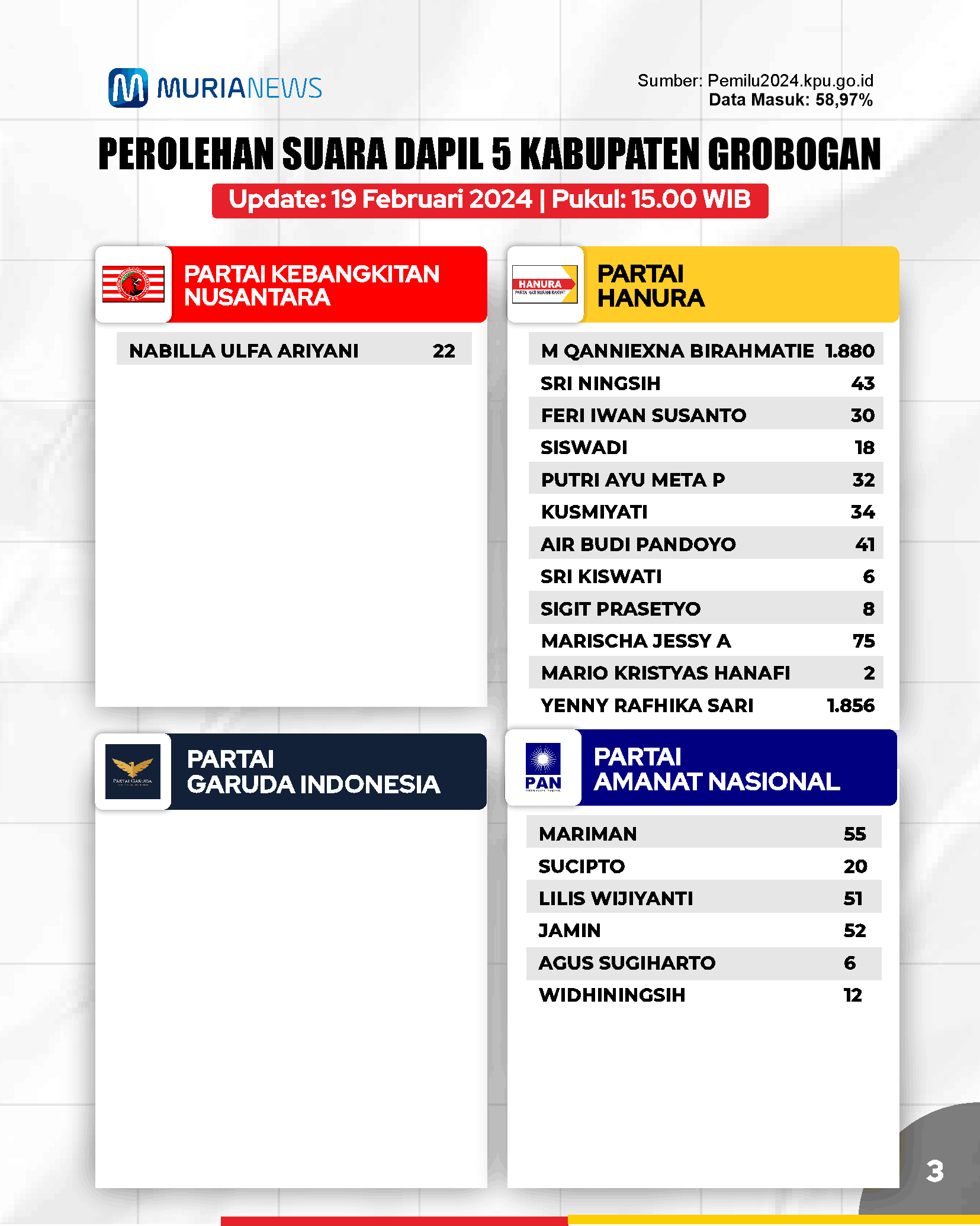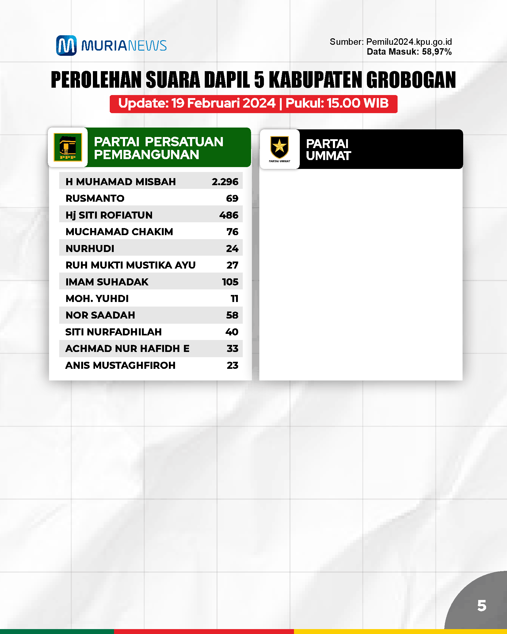 Update Suara Pileg DPRD Grobogan Dapil 5 Tanggal 20 Februari