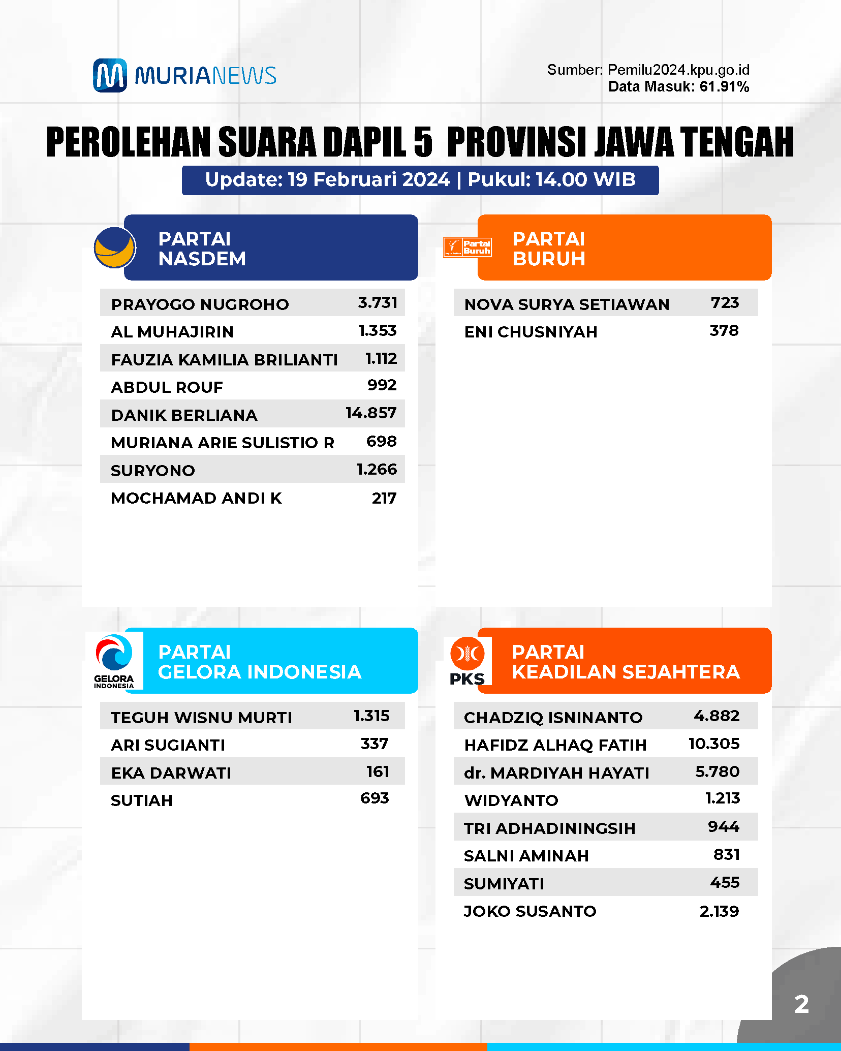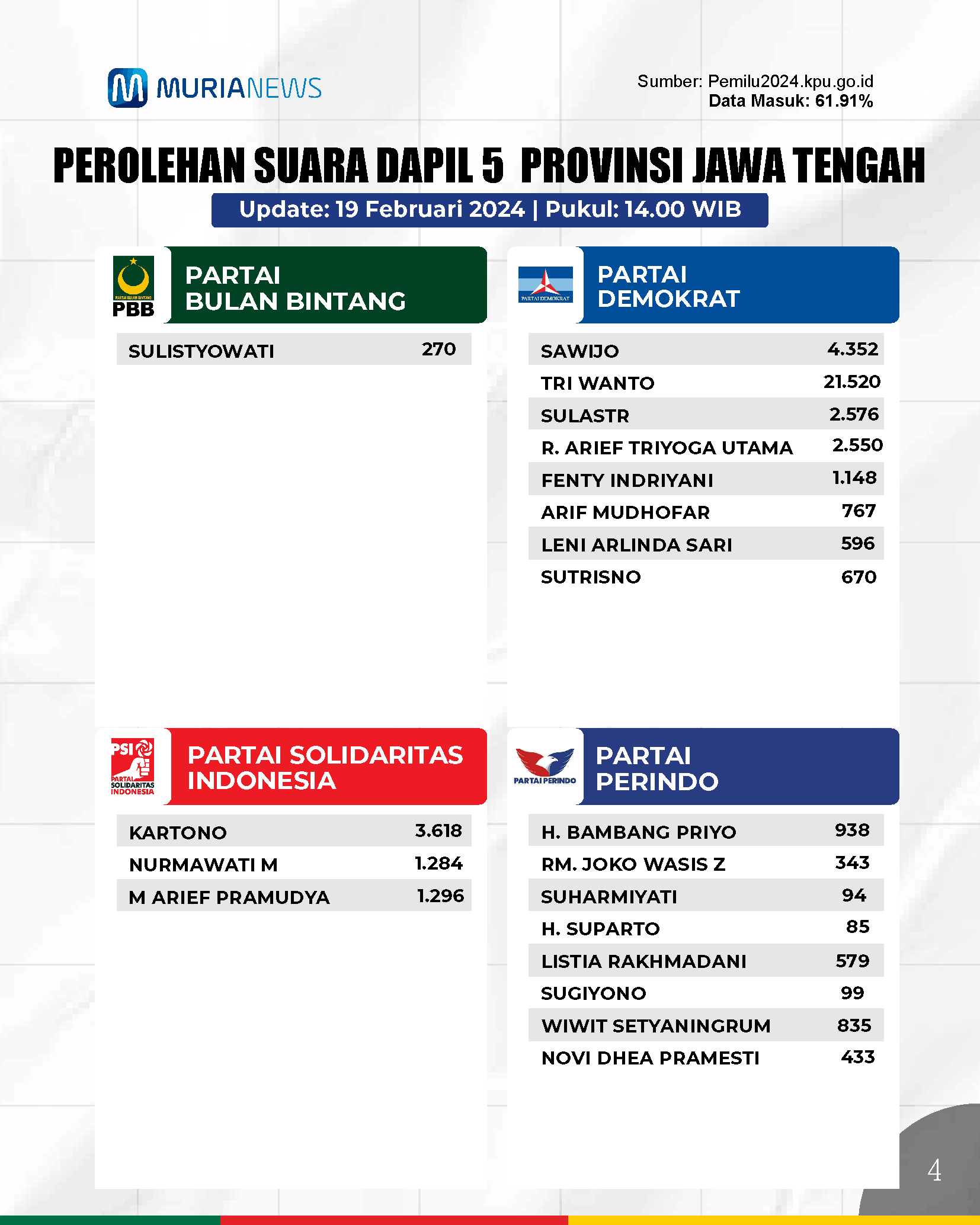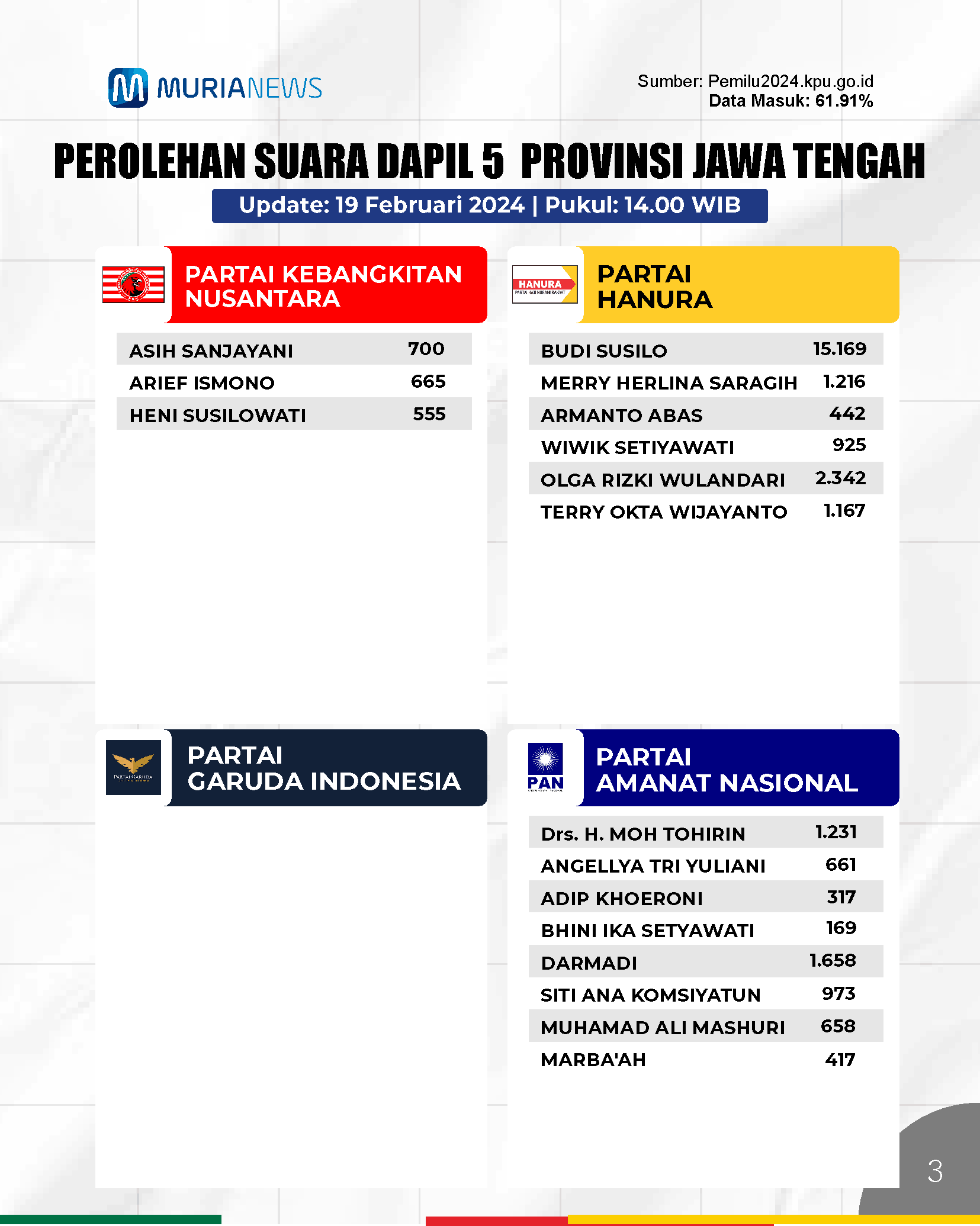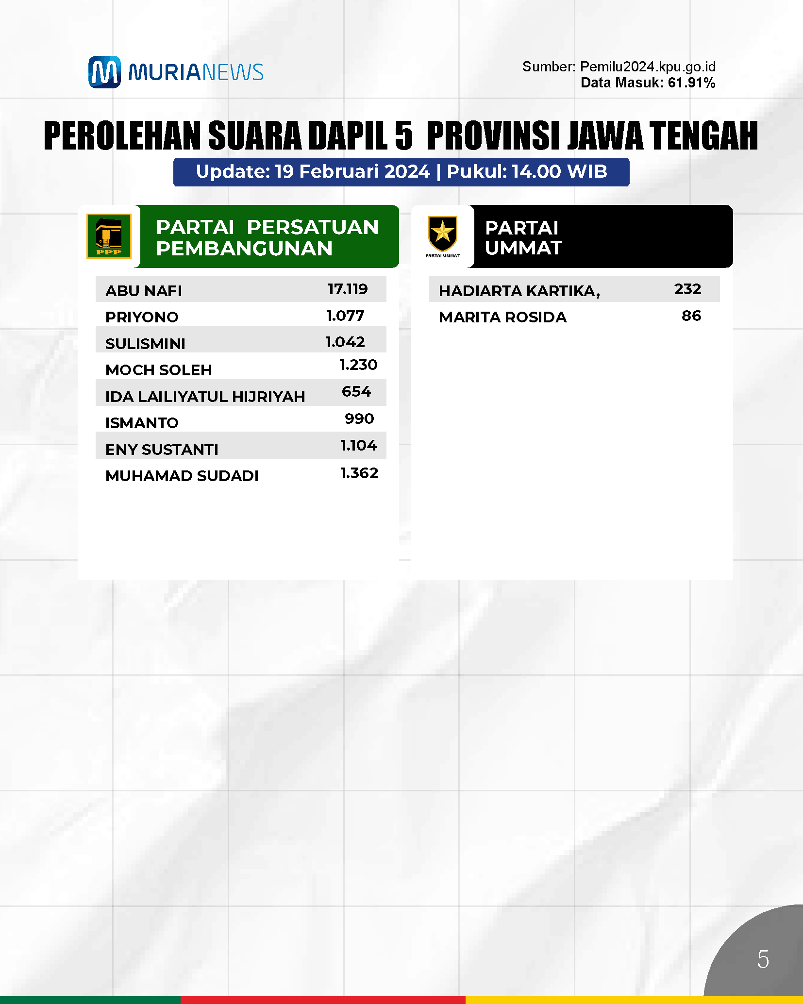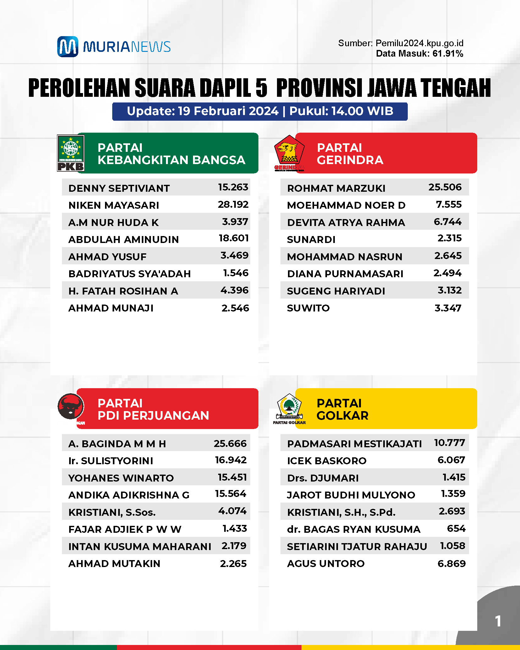 Update Suara Pileg DPRD Jateng Dapil 5 Tanggal 20 Februari