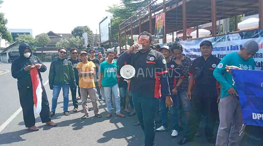 Paguyuban Sopir Pati (PSP) menggelar aksi di depan Kantor Bupati Pati. (Murianews/Umar Hanafi)