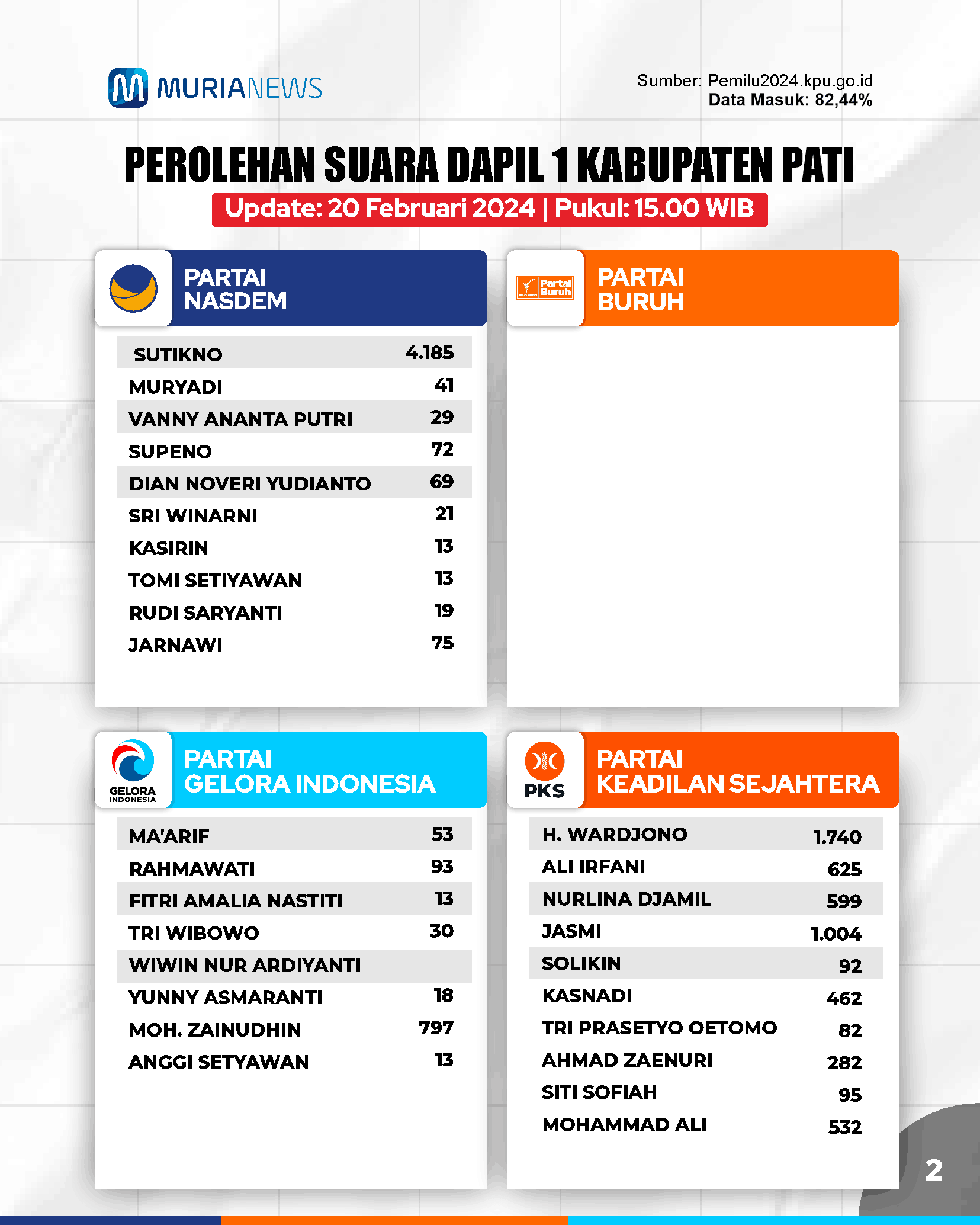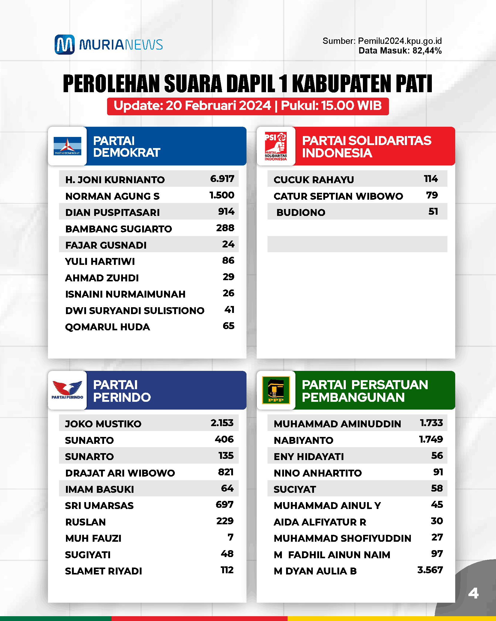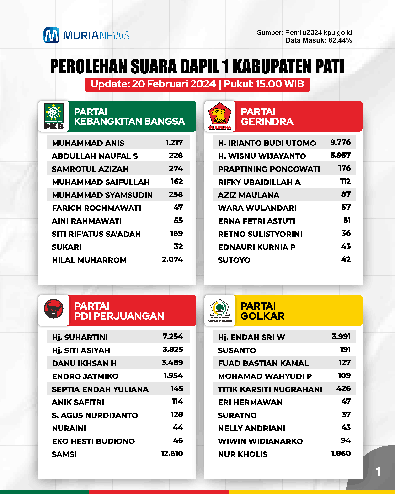 Update Suara Pileg Pati Dapil 1, 20 Februari 2024