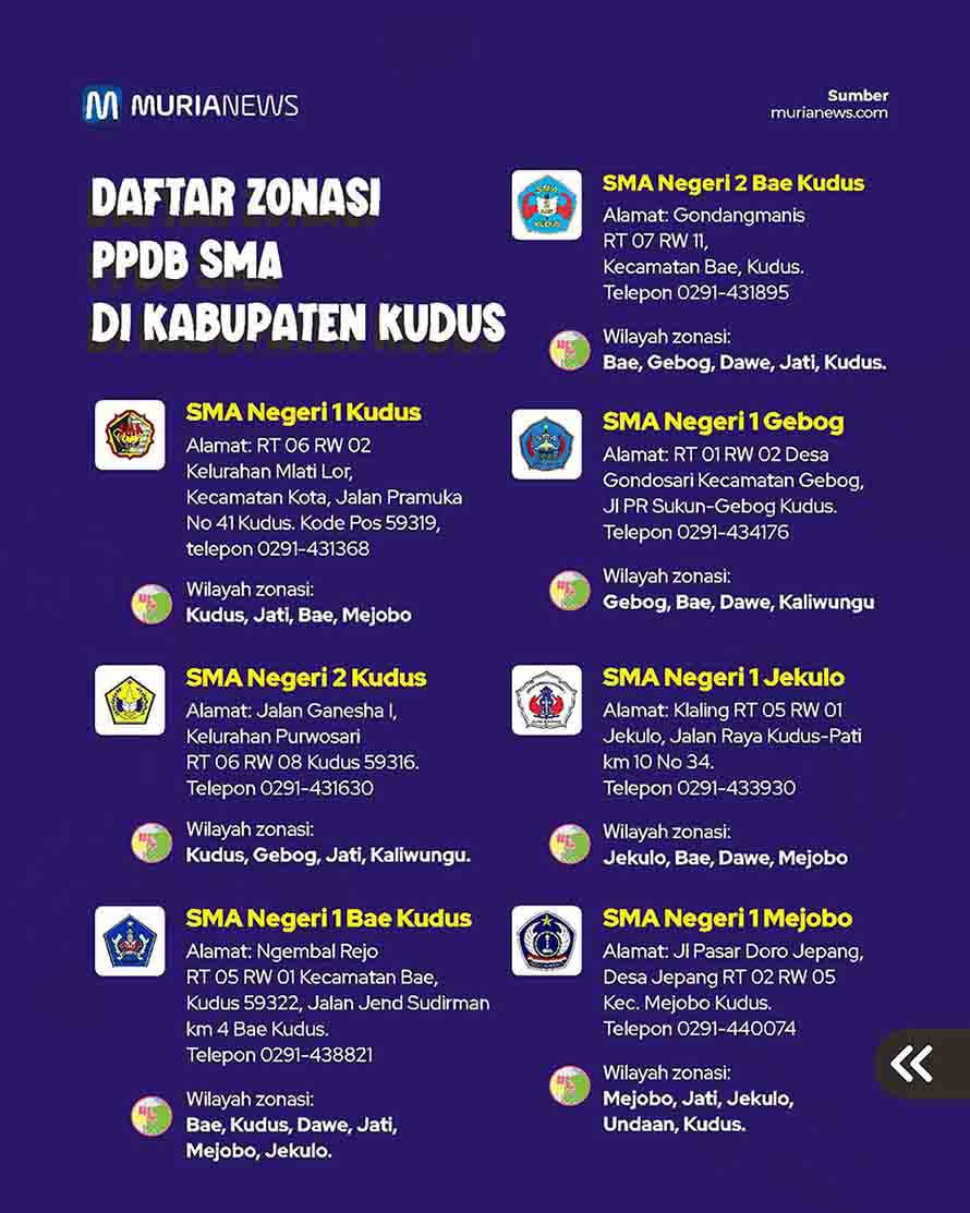 Berikut pembagian wilayah zonasi PPDB SMA di Kudus pada tahun ajaran 2024/2025: