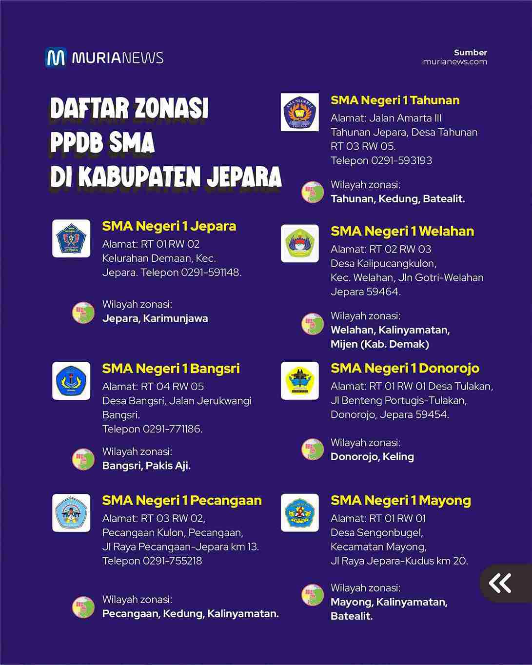 Berikut daftar zonasi PPDB SMA di Jepara pada tahun ajaran 2024/2025: