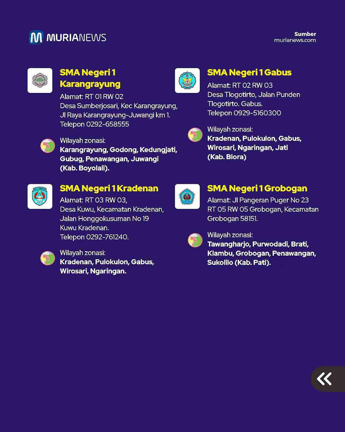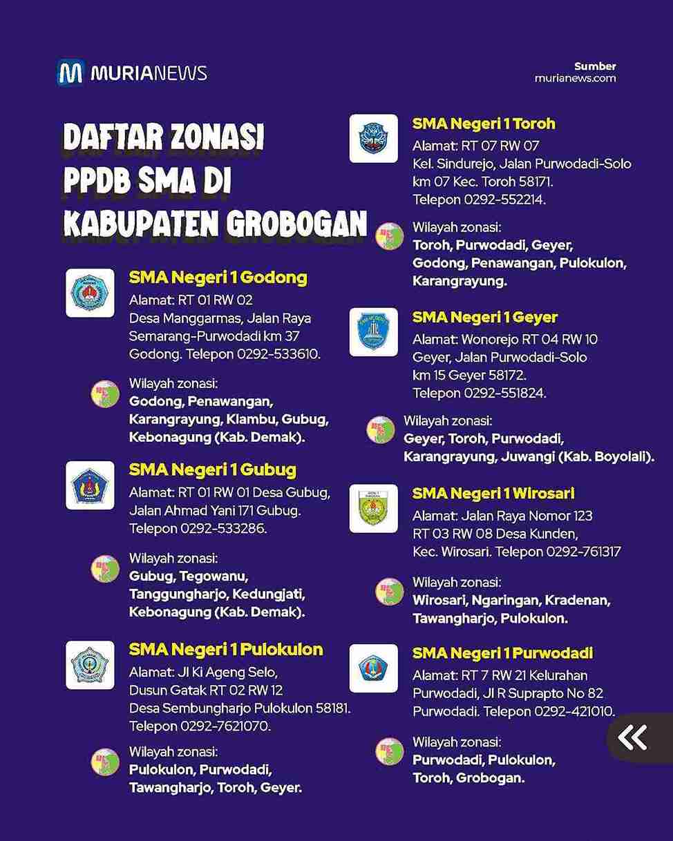 Berikut daftar zonasi PPDB SMA di Grobogan pada tahun ajaran 2024/2025: