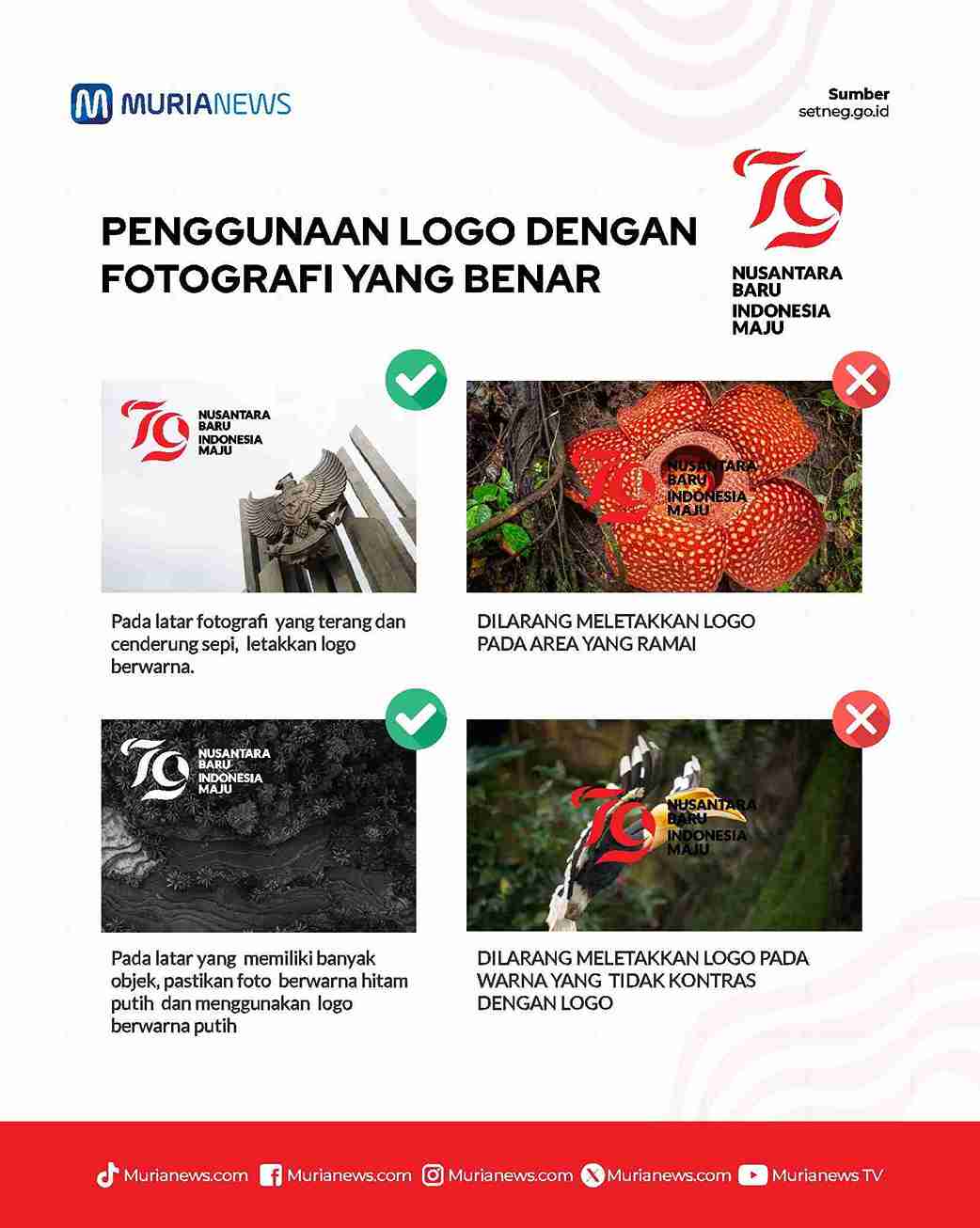 Ada beberapa pedoman yang harus diperhatikan dalam penempatan Logo HUT ke-79 RI. Salah satunya, dalam penempatan logo di dalam foto.