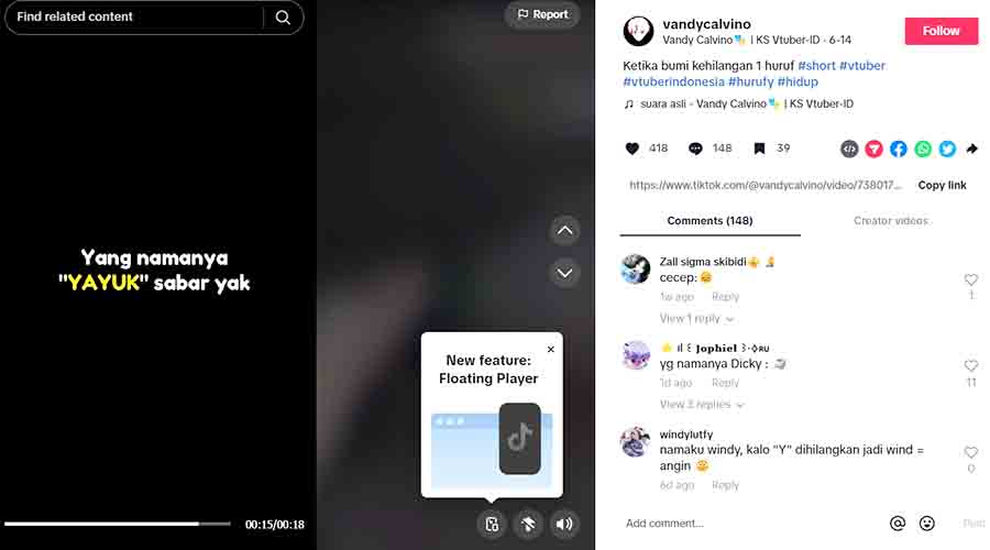 Tanpa ada penjelasan lebih lanjut, unggahan itu pun direspon para pengguna platform media sosial, salah satunya pengguna TikTok VandyCalvino.