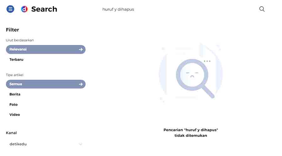 Tim Cek Fakta Murianews.com mencoba menelusurinya dengan mencari artikel berjudul ’’Huruf ’’Y’’ akan dihapus dari Alfabet” di DetikEdu, melalui pencarian di laman resminya.