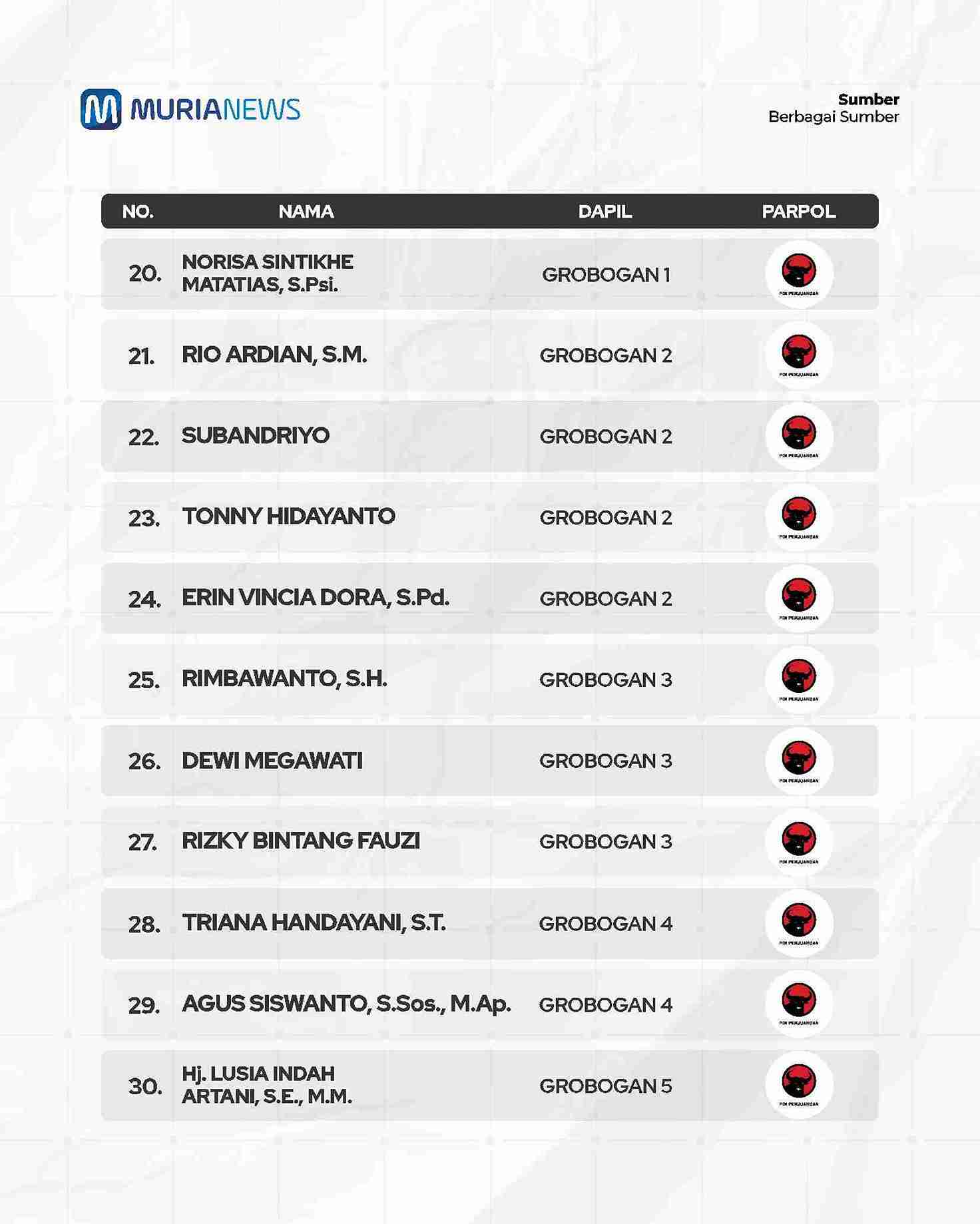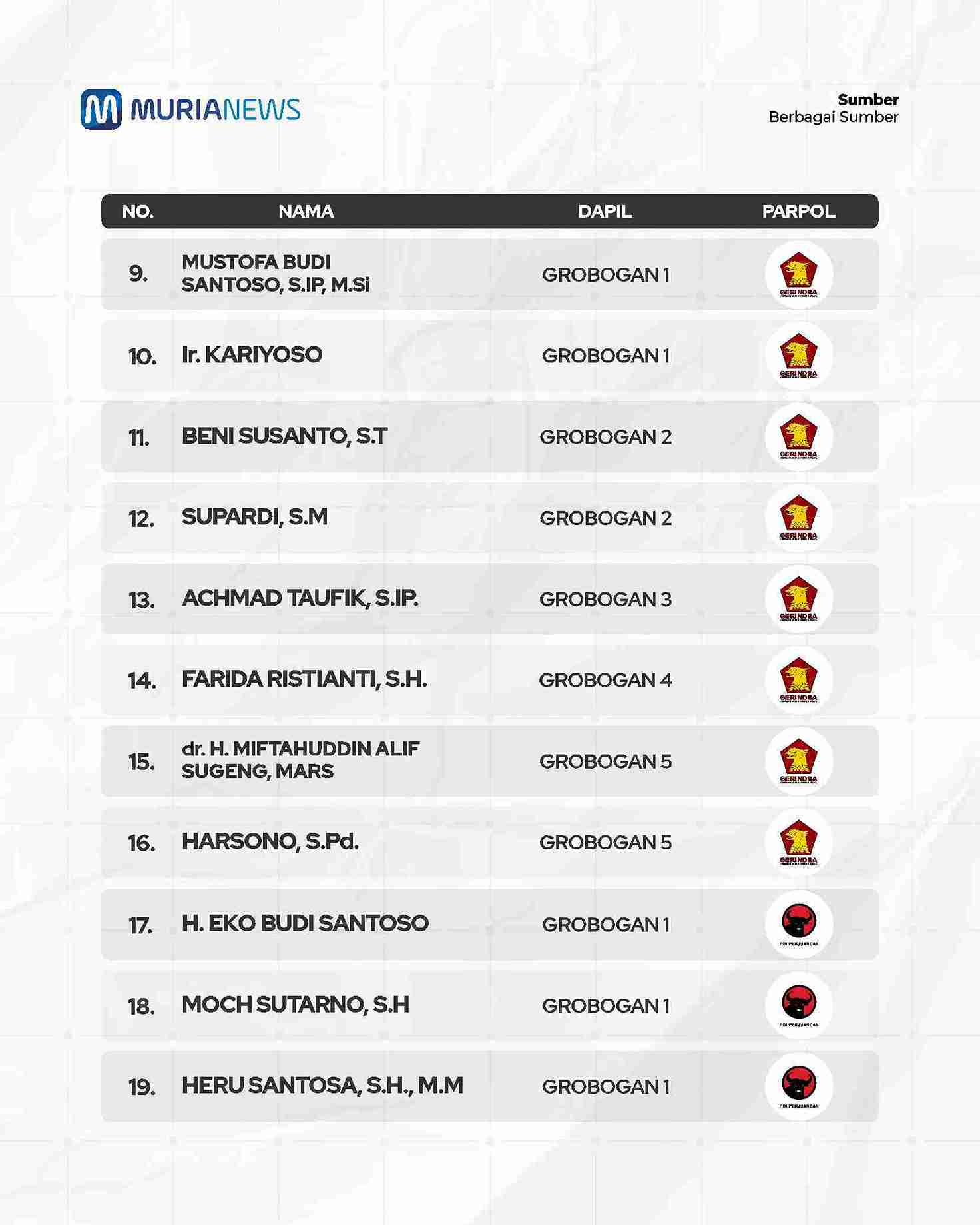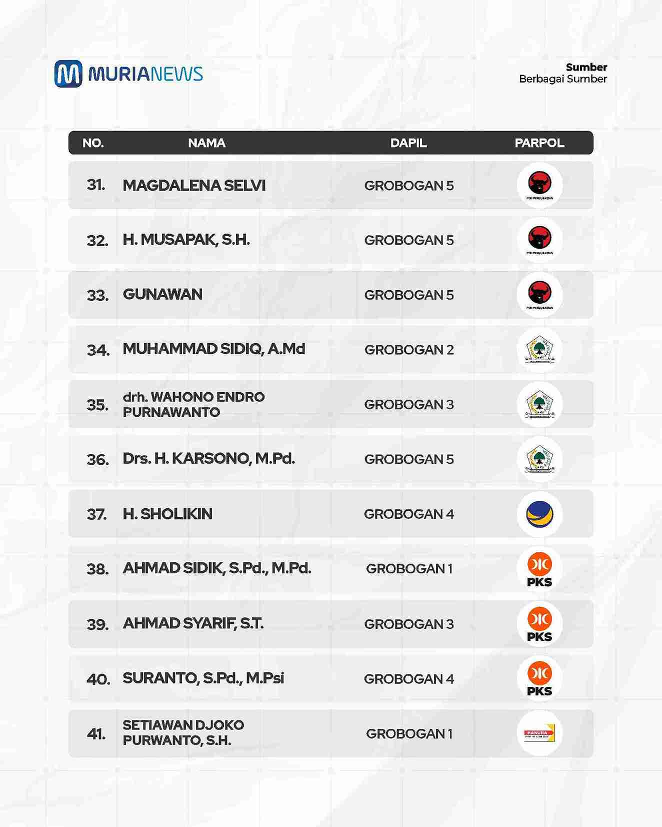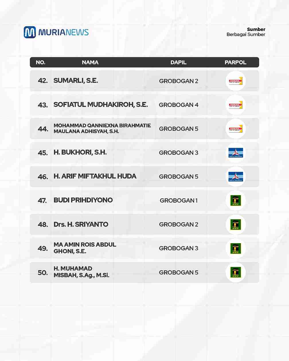 Berikut daftar lengkap anggota DPRD Grobogan yang dilantik 14 Agustus 2024 nanti: