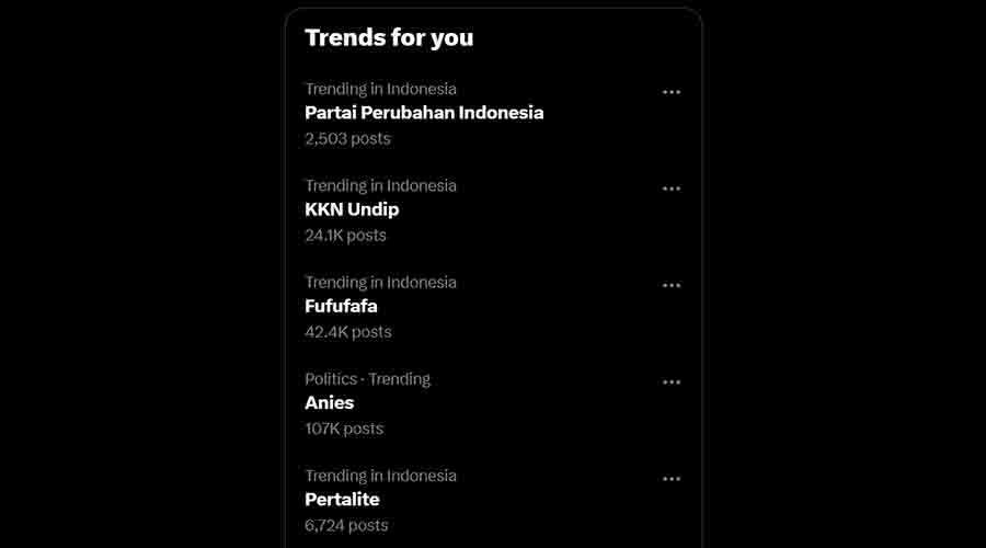 Tangkap layar trending X Sabtu (31/8/2024) yang menempatkan Partai Perubahan Indonesia di puncak. (Murianews)