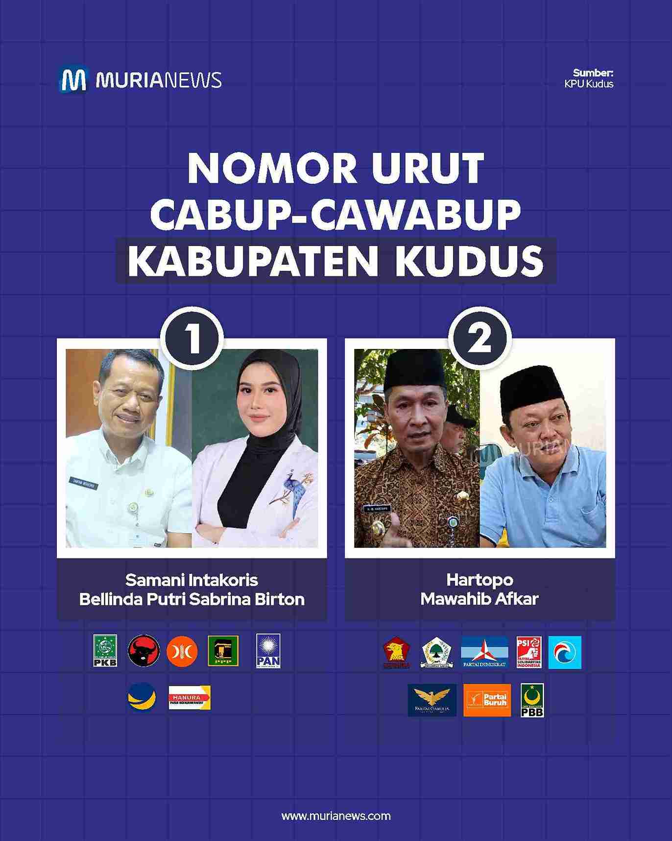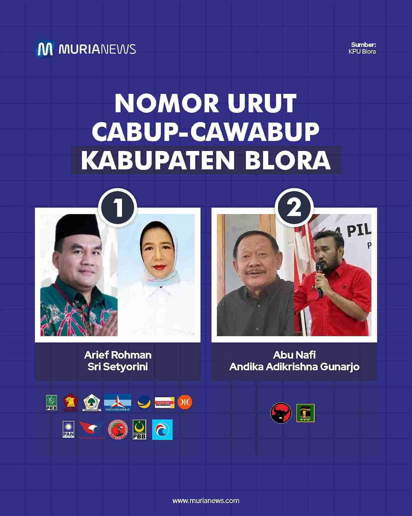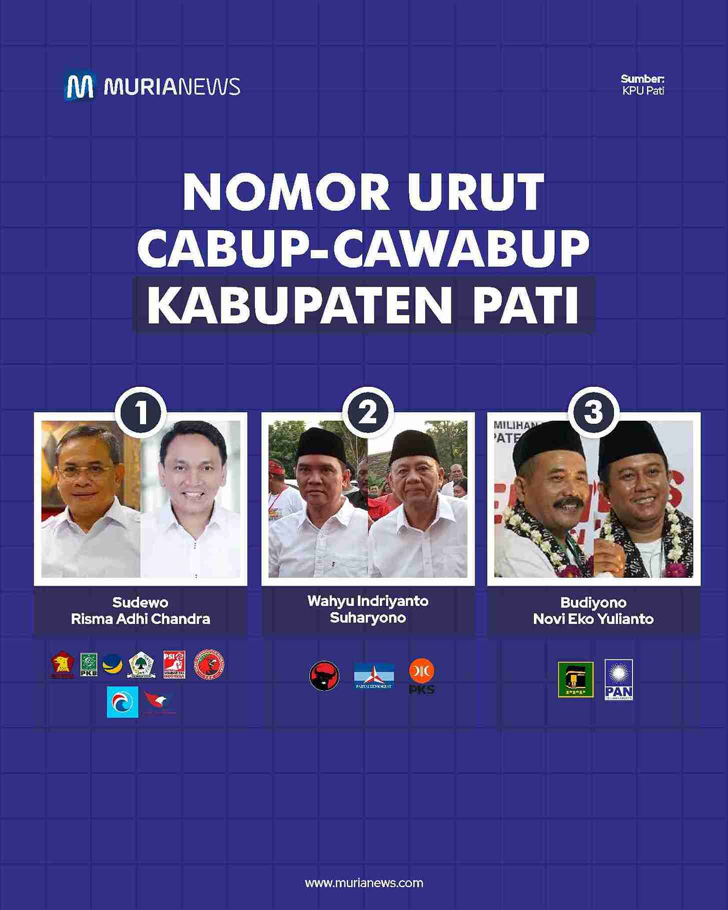 Berikut daftar pasangan Cabup-Wabup di Muria Raya dan nomor urutnya: