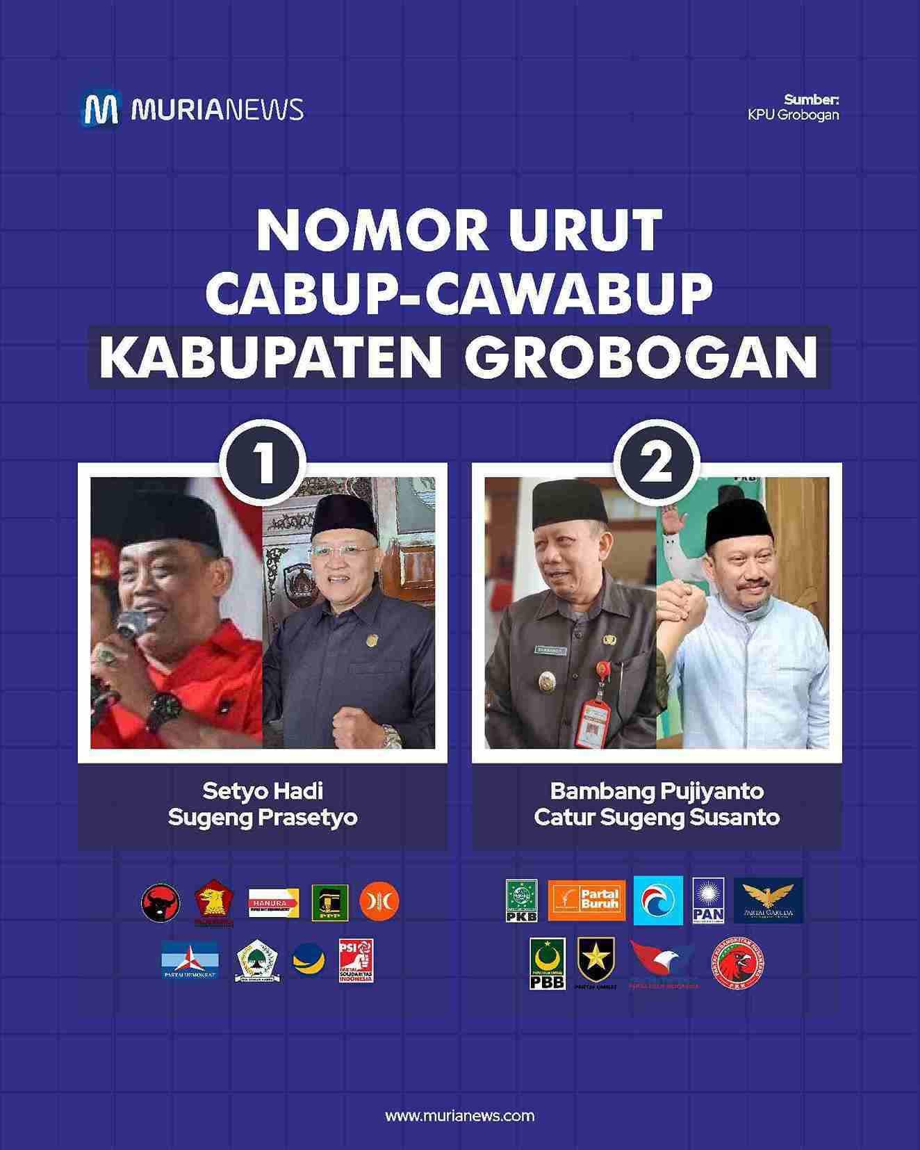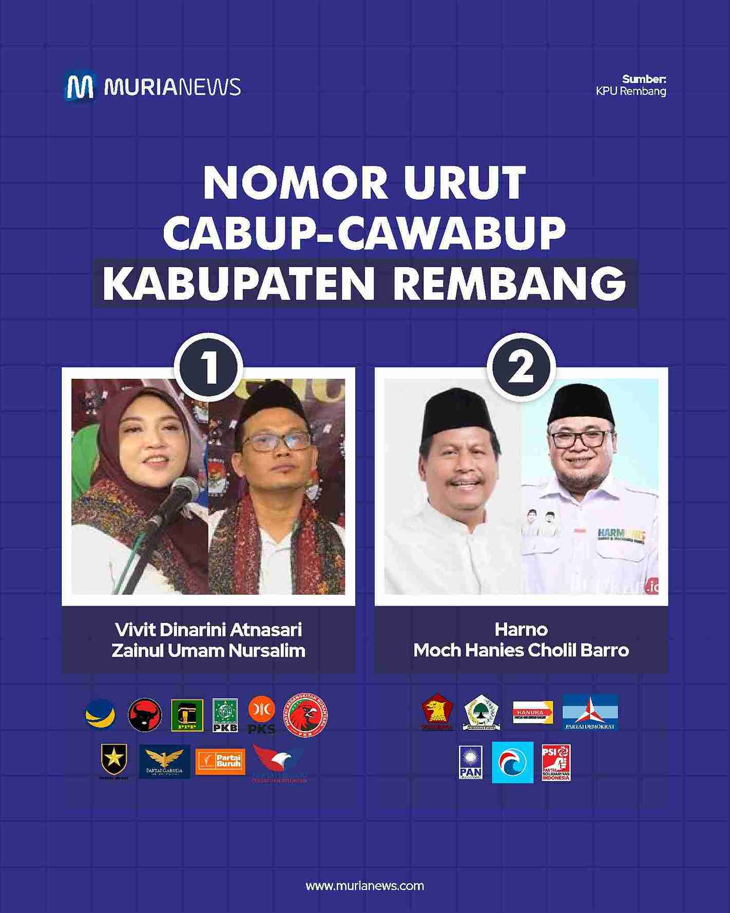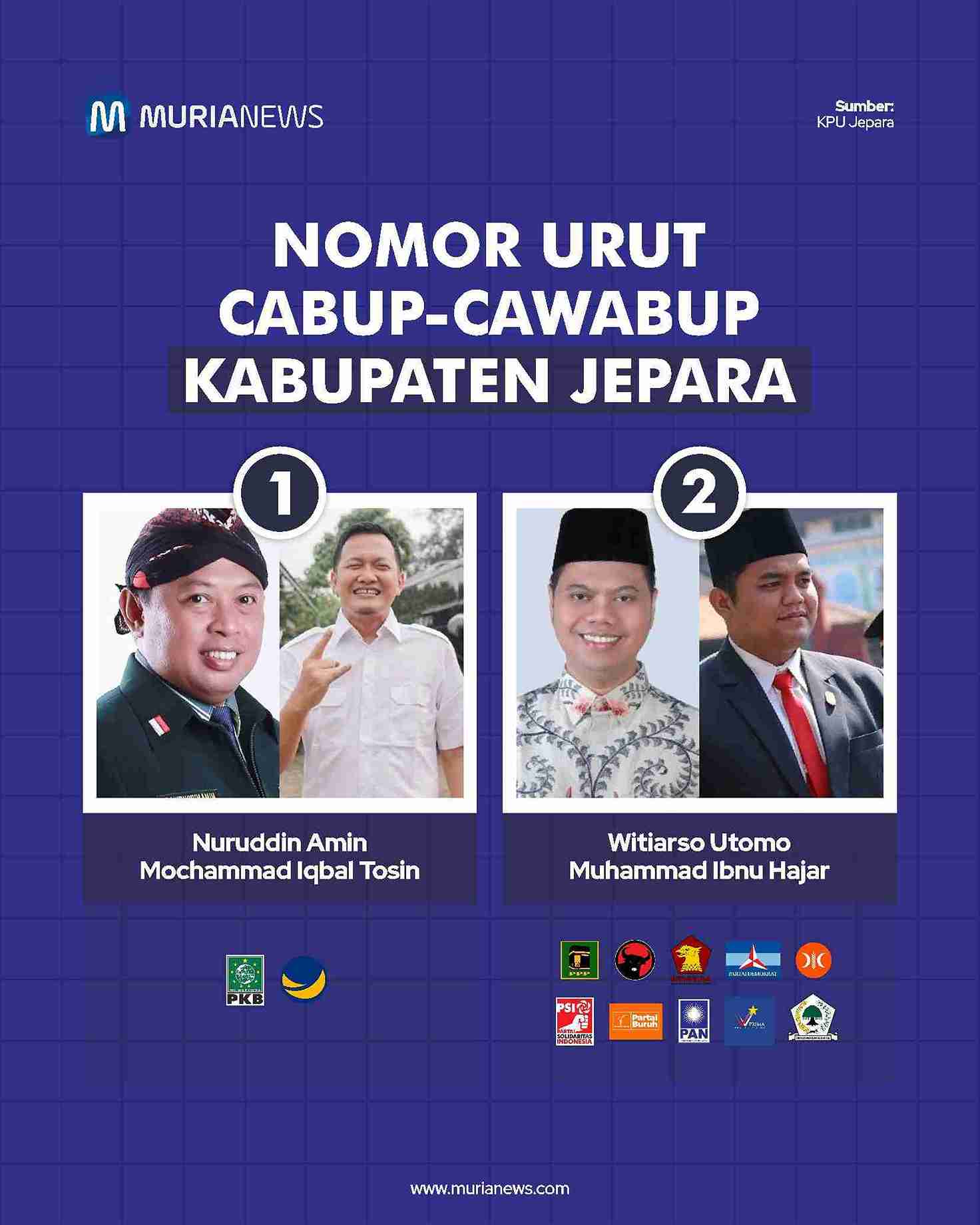 Berikut daftar pasangan Cabup-Wabup di Muria Raya dan nomor urutnya: