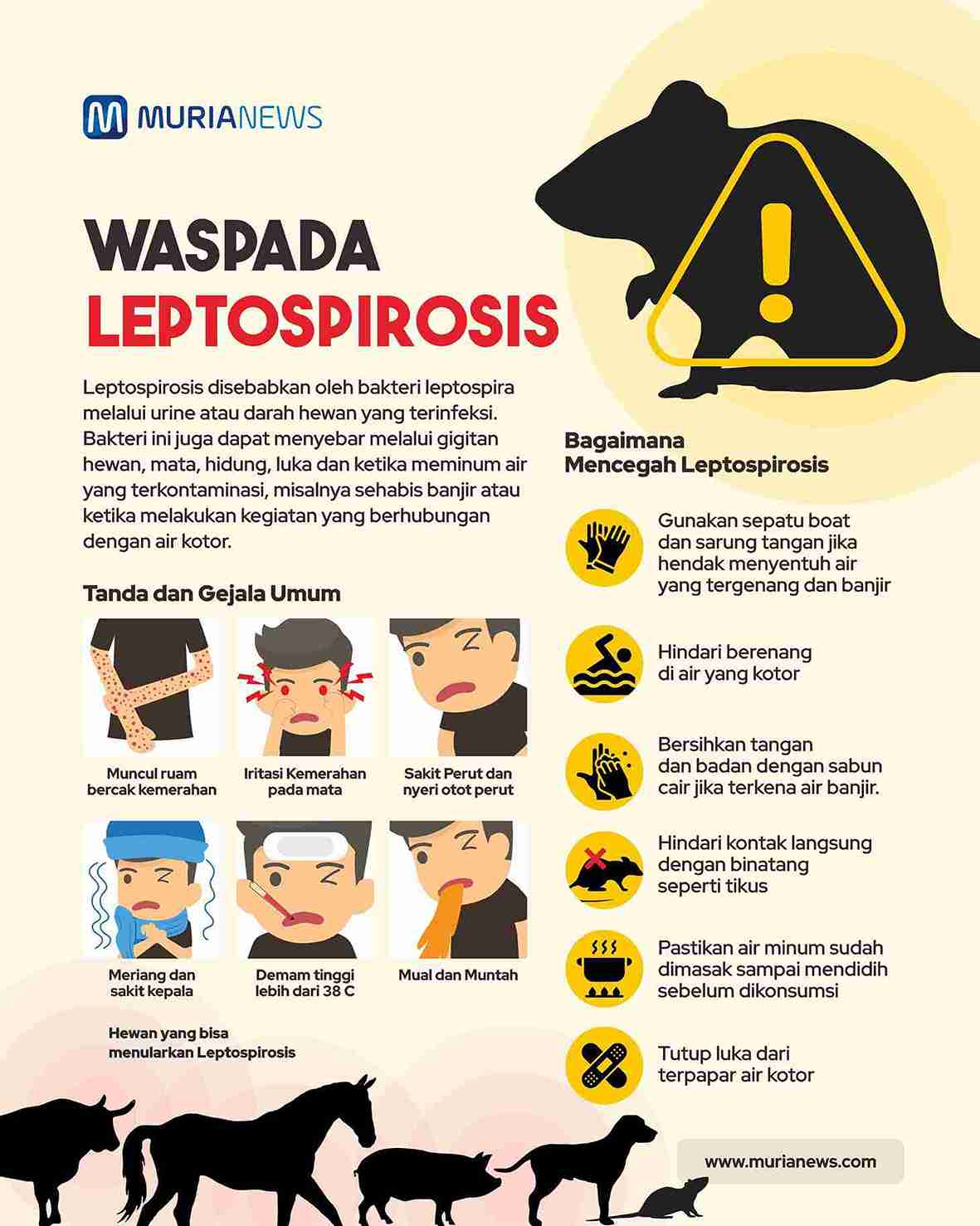 Adapun hewan yang dapat menularkan leptospirosis di antaranya tikus, anjing, sapi, babi, dan kuda.