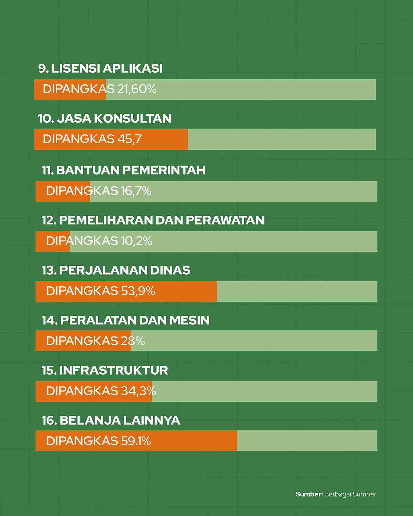 Berikut daftar 16 pos anggaran yang dipangkas dan besarannya:
