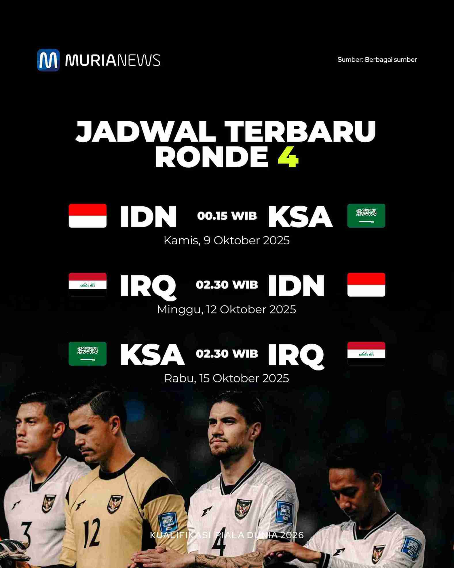 Murianews, Kudus – Terdapat perubahan jadwal timnas Indonesia di ronde 4 Kualifikasi Piala Dunia 2026 Zona Asia. Perubahannya hanya pada waktu kick-off pertandingan yang dilakukan Timnas Indonesia melawan Iraq.